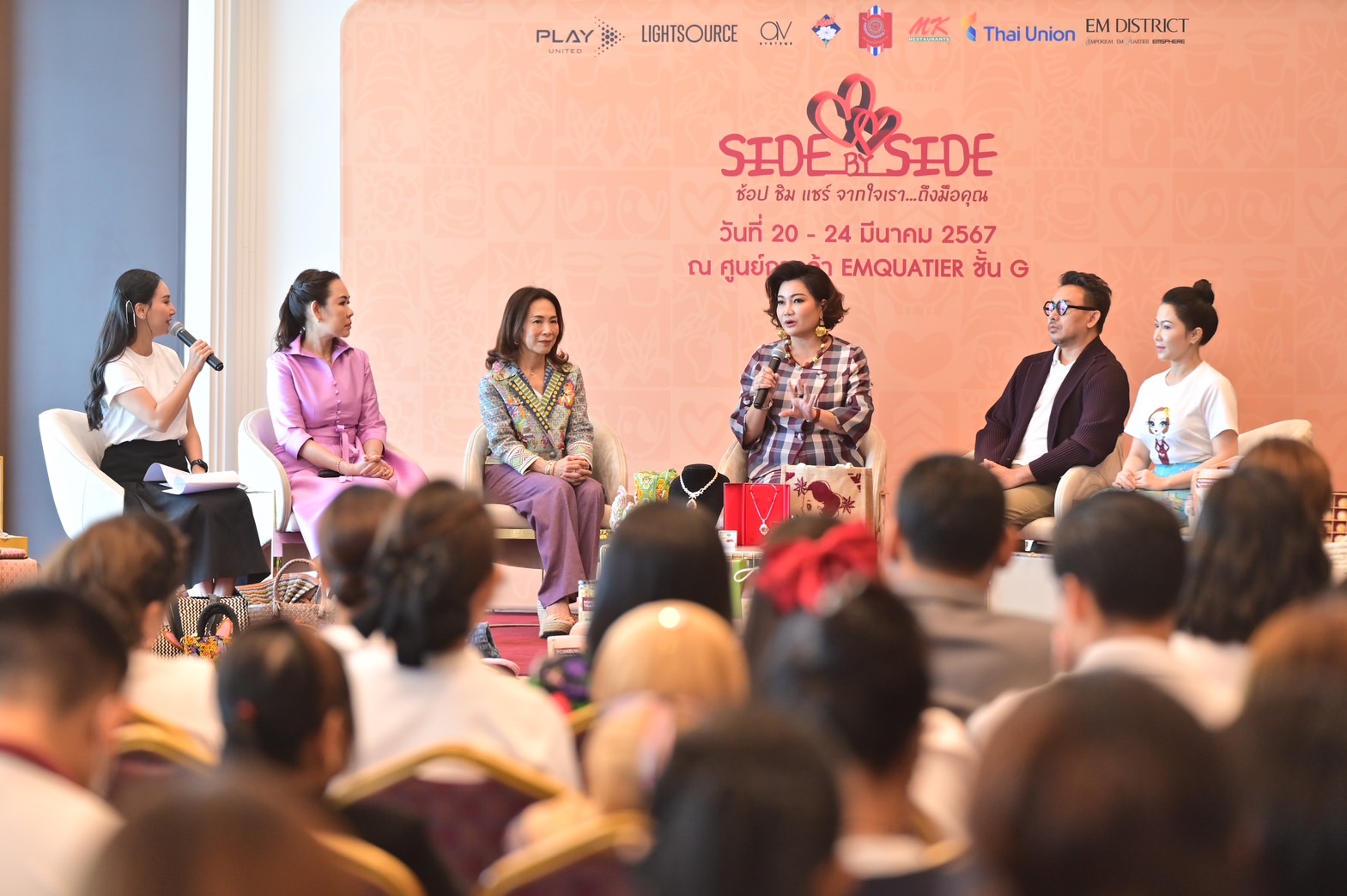 โดยงาน “Side by Side ช้อป ชิม แชร์ จากใจเรา…ถึงมือคุณ” มีผู้ร่วมสนับสนุนอีกมากมาย ไม่ว่าจะเป็น ศูนย์การค้าดิ เอ็มควอเทียร์ บริษัท อุตสาหกรรมนมไทย จำกัด (นมตรามะลิ) บริษัท เอ็มเค เรสโตรองต์ กรุ๊ป จำกัด (มหาชน) บริษัท ไทยยูเนียน กรุ๊ป จำกัด และบริษัท ไลท์ซอร์ส จำกัด
