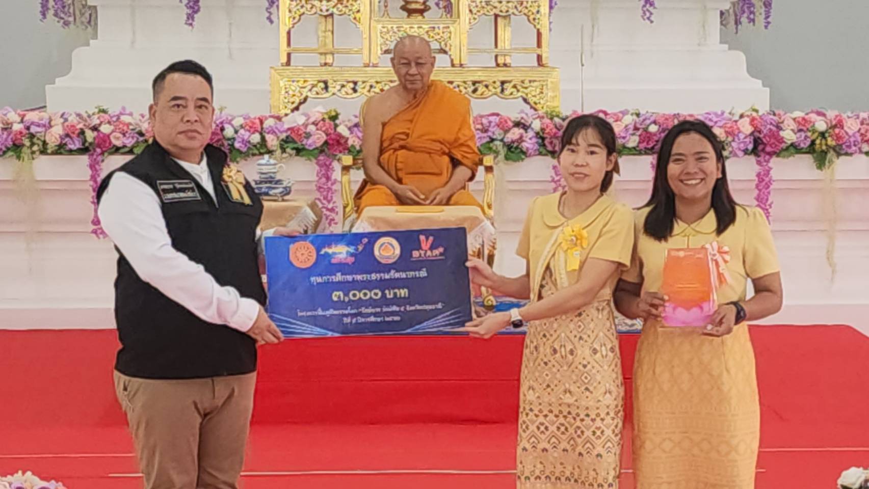 ภายในพิธีมอมบทุนมี ว่าที่ร้อยเอก สาคร กิ่งจันทร์ ศึกษาธิการจังหวัดปทุมธานี,คุณมนัส สุวรรณรินทร์ ท้องถิ่นจังหวัดปทุมธานี, คุณอภิสรา เกษอินทร์ นายอำเภอคลองหลวง พร้อมด้วยท่านผู้มีเกียรติ , นายสันติ รุ่งสุขพลากร ประธานชมรมพุทธศาสตร์สากล , นายพงศธรรศ รุจิพุฒธันยพัต นายกสมาคมนักข่าวจังหวัดปทุมธานี ให้เกียรติร่วมมอบทุนสถานศึกษาที่ผ่านการประเมิน โดยทุนการศึกษาได้รับความเมตตาจากพระธรรมรัตนาภรณ์ ชมรมพุทธศาสตร์สากล และมูลนิธิธรรมกาย เป็นผู้อุปถัมภ์รางวัล ทุนการศึกษา และงบประมาณดำเนินงานฯ โดยสถานศึกษาจะได้รับรางวัลแบ่งเป็นประเภทตามต้นสังกัด คือสถานศึกษาในสำนักงานส่งเสริมการปกครองท้องถิ่น จำนวน 15 แห่ง จะได้รับรางวัลประเภท “บวรสวยด้วยมือเรา” และสถานศึกษาในสังกัดสำนักงานเขตพื้นที่การศึกษาประถมศึกษา สำนักงานเขตพื้นที่การศึกษามัธยมศึกษา และสำนักงานศึกษาธิการจังหวัดปทุมธานี รวมจำนวน 62 แห่ง จะได้รับรางวัลประเภท “ต้นแบบด้านศีลธรรม” แต่ละประเภทรางวัล จะแบ่งเป็นระดับต่างๆ คือ ห้องเรียนต้นแบบ ชั้นเรียนต้นแบบ โรงเรียนต้นแบบ ตลอดจน รางวัลดีเด่นระดับเงิน และระดับทอง สำหรับปีการศึกษา 2566 นี้ มีสถานศึกษาที่เข้าร่วมโครงการฟื้นฟูศีลธรรมโลก “รักษ์บวร รักษ์ศีล 5 จังหวัดปทุมธานี” ปีที่ 5 ทั้งสิ้นจำนวน 77 แห่ง ซึ่งได้ดำเนินโครงการฯ เพื่อสร้างเยาวชนให้เป็นทั้งคนเก่งและคนดี ด้วยความรัก ความปรารถนาดี และเมตตาต่อลูกศิษย์มาโดยตลอด จนกระทั่งการประเมินผลในช่วงท้ายโครงการสิ้นสุดลงแล้วด้วยดี
