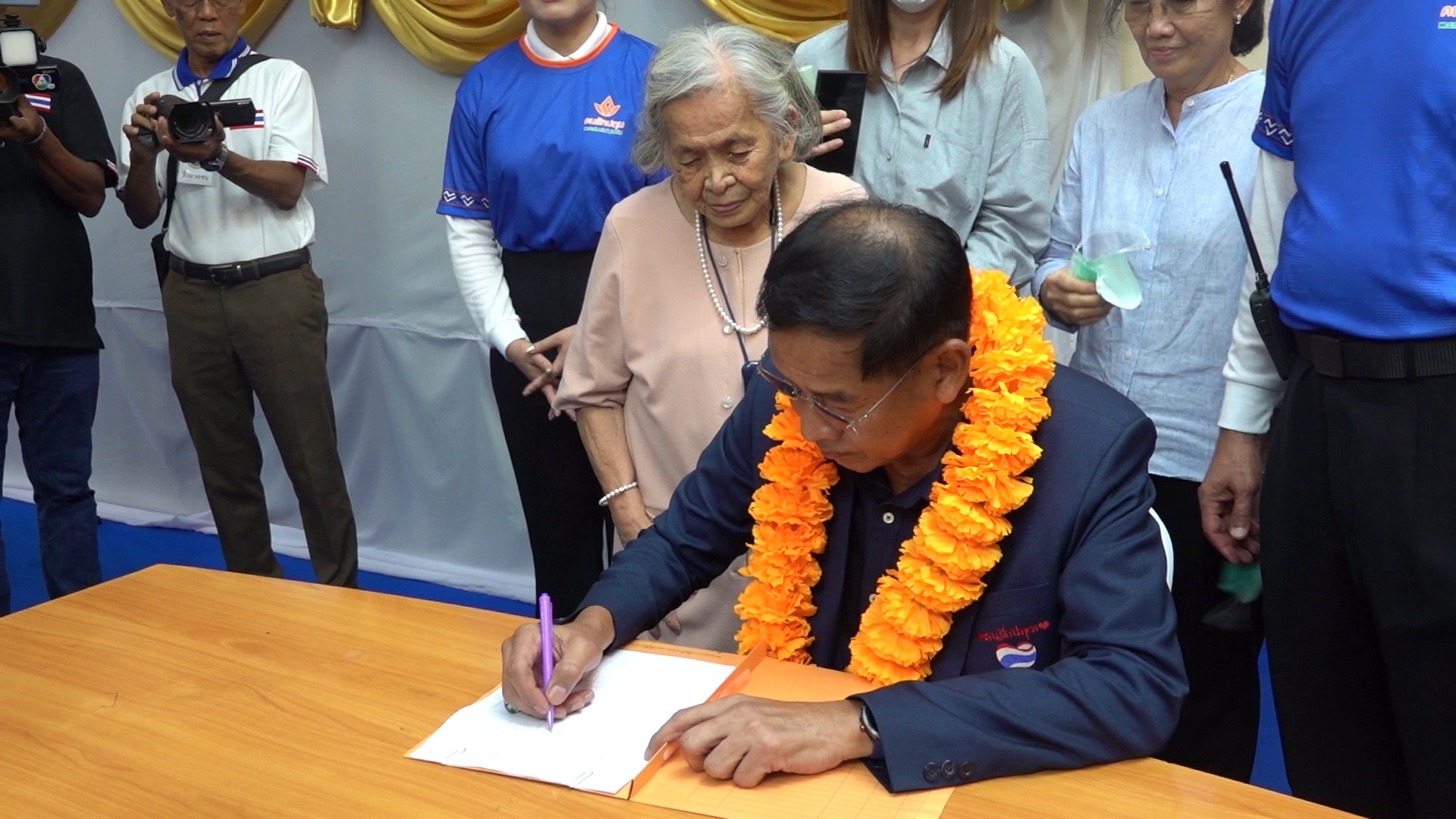 พล.ต.ท.คำรณวิทย์ ธูปกระจ่าง ผู้สมัครนายก อบจ.ปทุมธานี เบอร์ 3 กล่าวว่า ที่มาสมัครในวันนี้เนื่องจากคุณแม่ผมบอกให้มาวันนี้ เมื่อมาแล้วก็เกิดเรื่ออัศจรรย์อีก เมื่อเขียนใบสมัครเสร็จเจ้าหน้าที่แจ้งเวลาสมัครเสร็จ 11.22 น. สำหรับผมถือว่าเป็นเรื่องอัศจรรย์เพราะว่าแหวนที่ผมใส่เป็นแหวนหลวงปู่เส็งวัดบางนา ก็มีเลข 22 ตรงกับวันเกิดผมวันที่ 22 ถือเป็นเลขมงคล ผมยืนยังว่าชีวิตที่เหลือเพื่อปทุมธานี ไม่ได้มีจุดประสงค์อย่างอื่น อยากจะให้โครงการที่ทำไว้มีความต่อเนื่อง หลายสิ่งหลายอย่างที่เราต่อสู้กันมา 3 ปี 3 เดือน ที่ทำงาน ทุกอย่างมีการวางแผนเพื่อให้ทันต่อเหตุการณ์ หากปล่อยให้เหตุการณ์ที่ทำให้ประชาชนเดือดร้อนประสบภัย สิ่งที่ทำที่ผ่านมาถือเป็นการเยี่ยวยา เป็นการป้องกัน เช่น ปัญหาอุทกภัยที่เกิดขึ้น ใครไม่เคยเจอน้ำท่วมไม่รู้หรอก ในปี 54 น้ำท่วมใหญ่พี่น้องชาวปทุมธานีเดือดร้อนเยอะ ในปี 64,65,66 เราก็วางแผน ถึงแม้น้ำจะมาแค่ไหนเราก็ผ่านพ้นมาได้ แต่สิ่งที่ผมเป็นห่วงพี่น้องประชาชนมากคือโรคระบาด เราอย่าประมาท ผมได้สู้กับโรคระบาดมา เราได้ผ่านพ้นวิกฤตโควิด-19 มาด้วยกัน พี่น้องประชาชนชาวปทุมธานีเสียชีวิตกันมาก เผาศพจนเมรุระเบิด แต่เราก็ผ่านพ้นมาได้ เป็นการเอาวัคซีนซิโนฟาร์มมาฉีดให้ แต่การแพร่ระบาดของไข้หวัดใหญ่ 4 สายพันธุ์ อย่าประมาท เพราะข้อมูลทางสาธารณสุขจังหวัดปทุมธานีมีการระบาดเป็นอันดับ 1 จึงฝากความห่วงใยไว้ วันนี้ผมเข้ามาสมัครชิงตำแหน่งนายก อบจ.เพื่อสานงานต่อ ฝากพี่น้องประชาชนข้อให้ไว้ใจผม เราจะใช้สโลแกนในการหาสียงครั้งนี้ว่า “NEXTปทุมธานี” ปทุมธานีต้องไปต่อ และต้องไปต่อกับผมคำรณวิทย์ ธูปกระจ่าง ชีวิตที่เหลือเพื่อปทุมธานีครับ