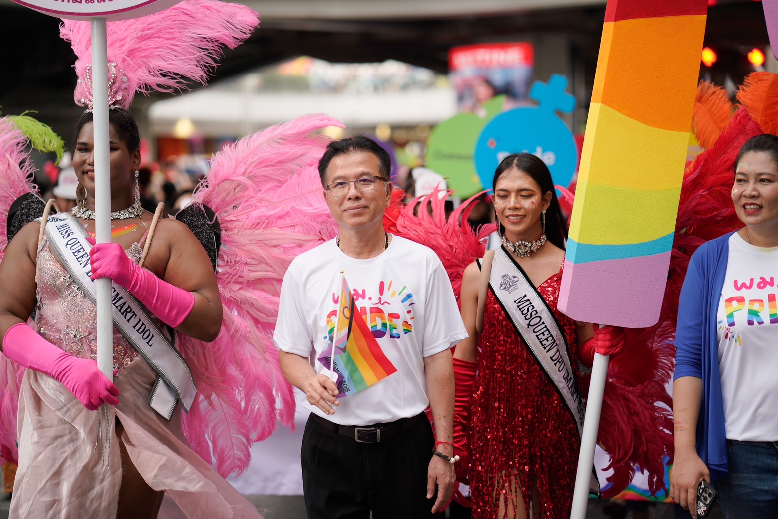 อธิบดีกรมกิจการสตรีและสถาบันครอบครัว กล่าวด้วยว่า สำหรับการจัดงาน Bangkok Pride Festival 2024 ในปีนี้ นอกจากกระทรวงพัฒนาสังคมฯ จะมาร่วมเป็นส่วนหนึ่งของขบวนพาเหรดที่ยิ่งใหญ่นี้แล้ว กระทรวงการพัฒนาสังคมฯ ได้สนับสนุนงบประมาณจากกองทุนส่งเสริมความเท่าเทียมระหว่างเพศให้กับมูลนิธิเพื่อสิทธิและความเป็นธรรมทางเพศและเครือข่ายไพรด์ 17 จังหวัด (18 พื้นที่) ร่วมจัดกิจกรรมต่าง ๆ ในระดับจังหวัด เช่น การเสวนา/การอบรม การเดินรณรงค์ การจัดแสดงนิทรรศการ เพื่อสร้างการรับรู้และความเข้าใจความเท่าเทียมระหว่างเพศให้แก่ประชาชนในพื้นที่ตลอดเดือนมิถุนายนนี้ ผมขอสื่อสารไปยังภาคีเครือข่ายไพรด์ ทุกภาคส่วนทั้งในส่วนกลางและต่างจังหวัดว่าหน่วยงานของกระทรวงพัฒนาสังคมฯ พร้อมทำงานร่วมกับทุกท่านและพร้อมรับฟังปัญหา ความคิดเห็นและข้อเสนอแนะจากทุกฝ่ายเพื่อร่วมผลักดันนโยบาย มาตรการกลไกเพื่อพัฒนาคุณภาพชีวิตของประชาชนและขจัดอุปสรรคซึ่งเป็นผลมาจากการเลือกปฏิบัติด้วยเหตุแห่งเพศ