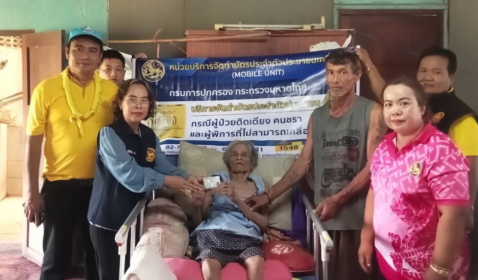 วันที่ 15 กรกฎาคม 2567 ร้อยตำรวจตรีหญิง สายสุนี ไกรนรา นายอำเภอลาดหลุมแก้ว จังหวัดปทุมธานี พร้อมด้วยปลัดอำเภอประจำสำนักทะเบียนอำเภอลาดหลุมแก้ว เจ้าหน้าที่ปกครอง เจ้าหน้าที่ศูนย์บริหารการทะเบียนภาค 1 จังหวัดปทุมธานี สมาชิก อส.อ.ลาดหลุมแก้ว ที่ 5 ผู้ใหญ่บ้าน ผู้ช่วยผู้ใหญ่บ้าน ประชาชนจิตอาสา ออกให้บริการทำบัตรนอกสถานที่ ตามโครงการทำบัตรประจำตัวประชาชนเคลื่อนที่ (Mobile Unit) ให้แก่ผู้ป่วยติดเตียง คนชรา และผู้พิการ จนไม่สามารถเคลื่อนย้ายได้ถึงที่บ้าน ซึ่งเป็นนโยบายสำคัญของกรมการปกครอง กระทรวงมหาดไทย ในการบำบัดทุกข์ บำรุงสุข ให้กับประชาชนอำเภอลาดหลุมแก้ว จำนวน 5 ราย