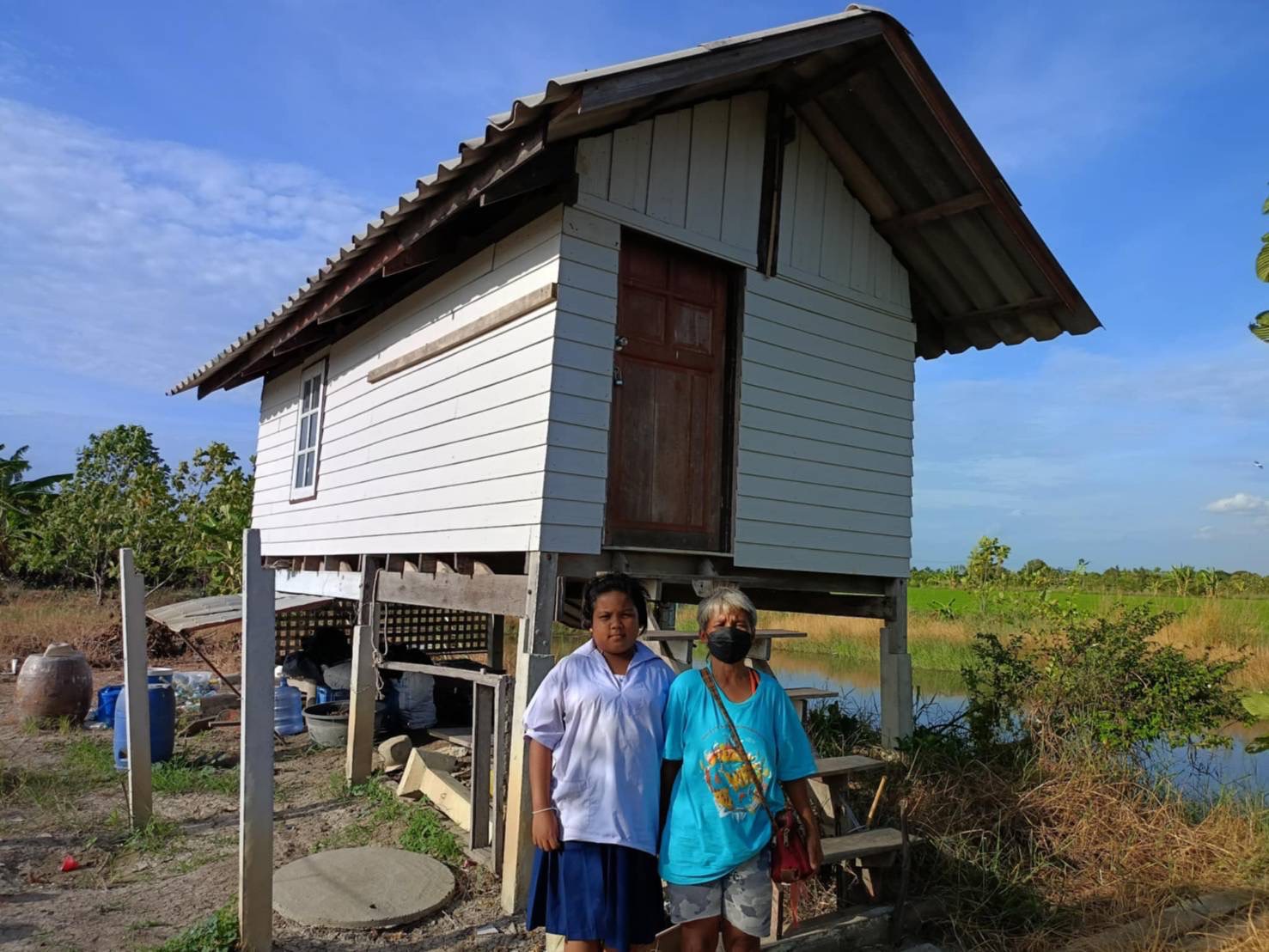 นอกจากนี้ ร.ต.ต.หญิงสายสุนี ไกรนรา นายอำเภอลาดหลุมแก้ว ร่วมกับ ปลัดองค์การบริหารส่วนตำบลบ่อเงิน รองปลัดฯ กำนันตำบลบ่อเงิน กำนันตำบลคูขวาง ครูโรงเรียนวัดบ่อเงิน ลงพื้นที่เยี่ยมครอบครัวเด็กหญิงละอองดาว ผลฝรั่ง เด็กนักเรียน ชั้น ป.5 โรงเรียนวัดบ่อเงิน เป็นเด็กเรียนดี ได้เกรด 4 ทุกวิชา อยู่กับมารดาซึ่งเป็นผู้พิการทางสมอง อาศัยอยู่ที่กระท่อมเถียงนา ไม่มีไฟฟ้า น้ำสะอาด และไม่มีห้องน้ำ ต้องเดินทางไกล 10 กม. เพื่อมาอาบน้ำที่วัดบ่อเงิน ก่อนไปโรงเรียนวัดบ่อเงิน ซึ่งอยู่บริเวณเดียวกัน