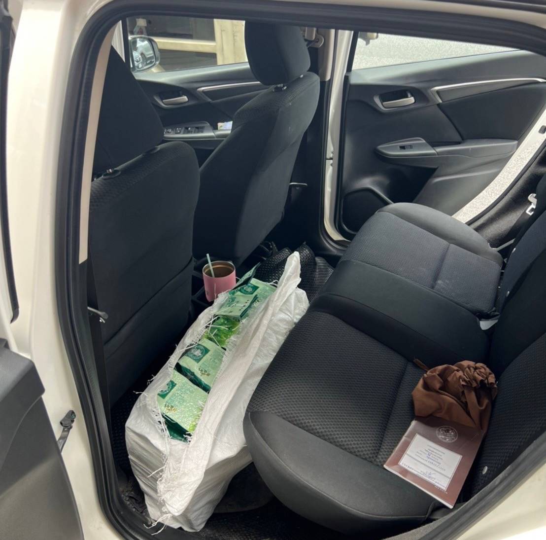 กรณีดังกล่าวสืบเนื่องจาก วันที่ 22 ก.ย.ที่ เวลาประมาณ 11.00 น. ผ่านมา เจ้าหน้าที่ตำรวจศูนย์ควบคุมจราจร ด่วน 2 กก.2 บก.จร. ได้ตั้งจุดกวดขันวินัยจราจร บริเวณด่านเก็บค่าผ่านทางประชาชื่น พบรถยนต์ต้องสงสัย ยี่ห้อฮอนด้า สีขาว รุ่นแจ๊ส คันหมายเลขทะเบียน บ–9999 กรุงเทพมหานคร (ป้ายแดง) ได้ขับเข้าด่านตรวจและแสดงพฤติการณ์ขับรถหักหลบเจ้าหน้าที่และหลบหนี จึงทำการตรวจสอบรถยนต์คันดังกล่าวโดยการไล่ติดตามจนถึงบริเวณโค้ง บขส. (ขาเข้า) ใกล้ต่างระดับรถไฟฟ้า ได้เข้าตรวจสอบในรถยนต์คันดังกล่าว จากการตรวจสอบพบวัตถุต้องสงสัยอยู่ในกระสอบ สีขาว จำนวน 1 กระสอบใหญ่ อยู่บริเวณเบาะหลังคนขับ ภายในกระสอบดังกล่าว พบเป็นถุงชาสีเขียว และด้านในเป็นเกล็ดผลึกใสสีขาว