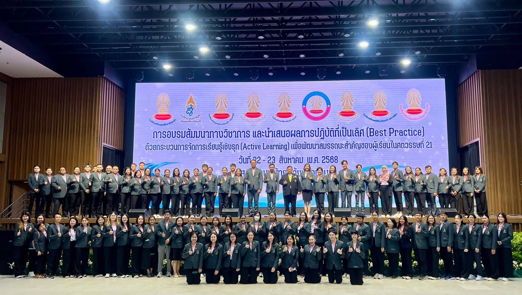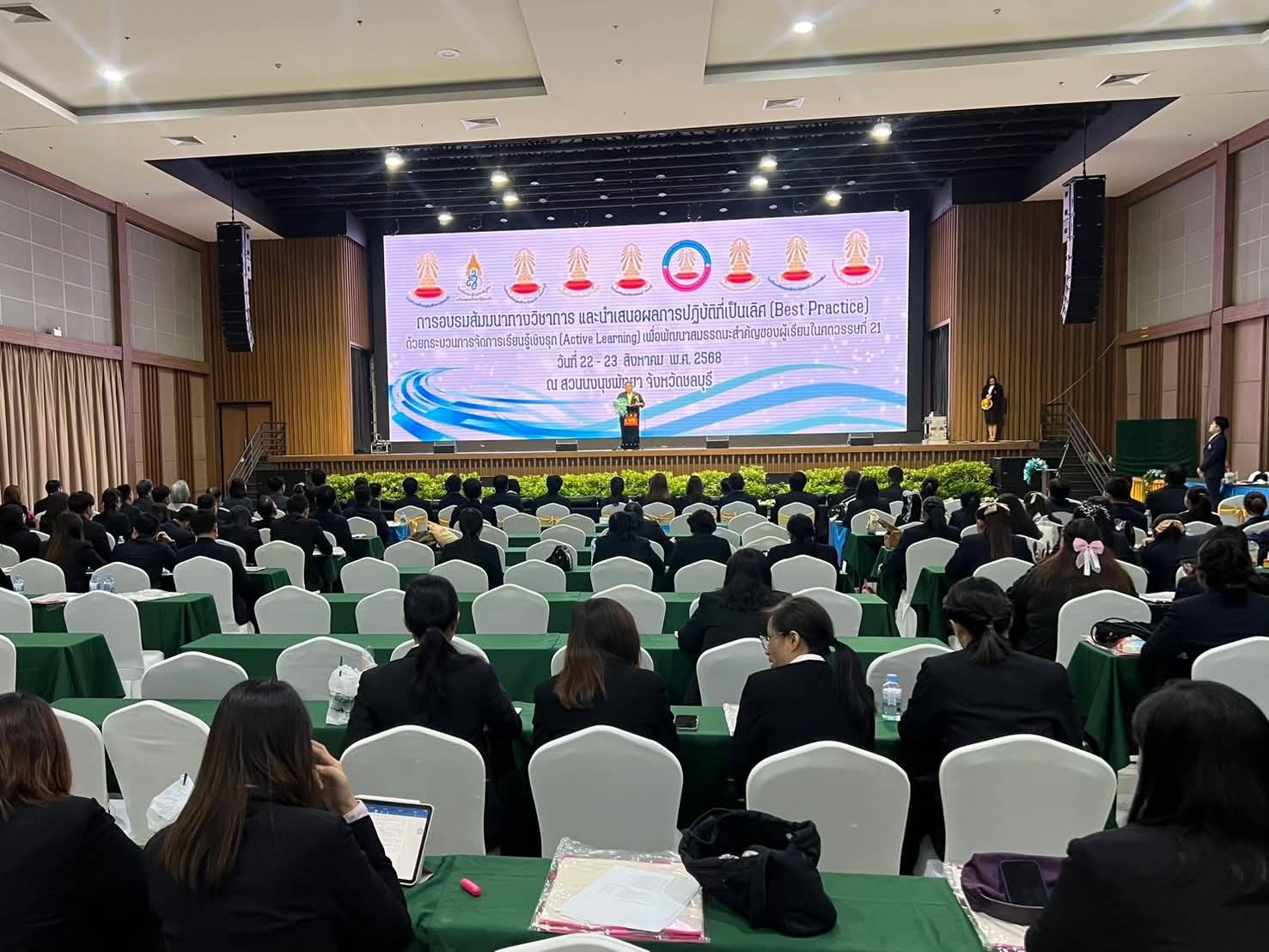 วันที่ 22 สิงหาคม 2568 ว่าที่ร้อยตรี ธนุ วงษ์จินดา เลขาธิการคณะกรรมการการศึกษาขั้นพื้นฐาน (เลขาธิการ กพฐ.) มอบหมายให้ นายธีร์ ภวังคนันท์ รองเลขาธิการคณะกรรมการการศึกษาขั้นพื้นฐาน (รองเลขาธิการ กพฐ.) เป็นประธานเปิดการอบรมสัมมนาทางวิชาการ และนำเสนอการปฏิบัติที่เป็นเลิศ (Best Practice) ด้วยกระบวนการจัดการเรียนรู้เชิงรุก (Active Learning) เพื่อพัฒนาสมรรถนะสำคัญของผู้เรียนในศตวรรษที่ 21 โดยมีผู้เข้าร่วมเป็นครูและบุคลากร โรงเรียนในเครือเตรียมอุดมศึกษาน้อมเกล้า ณ สวนนงนุช พัทยา จังหวัดชลบุรี