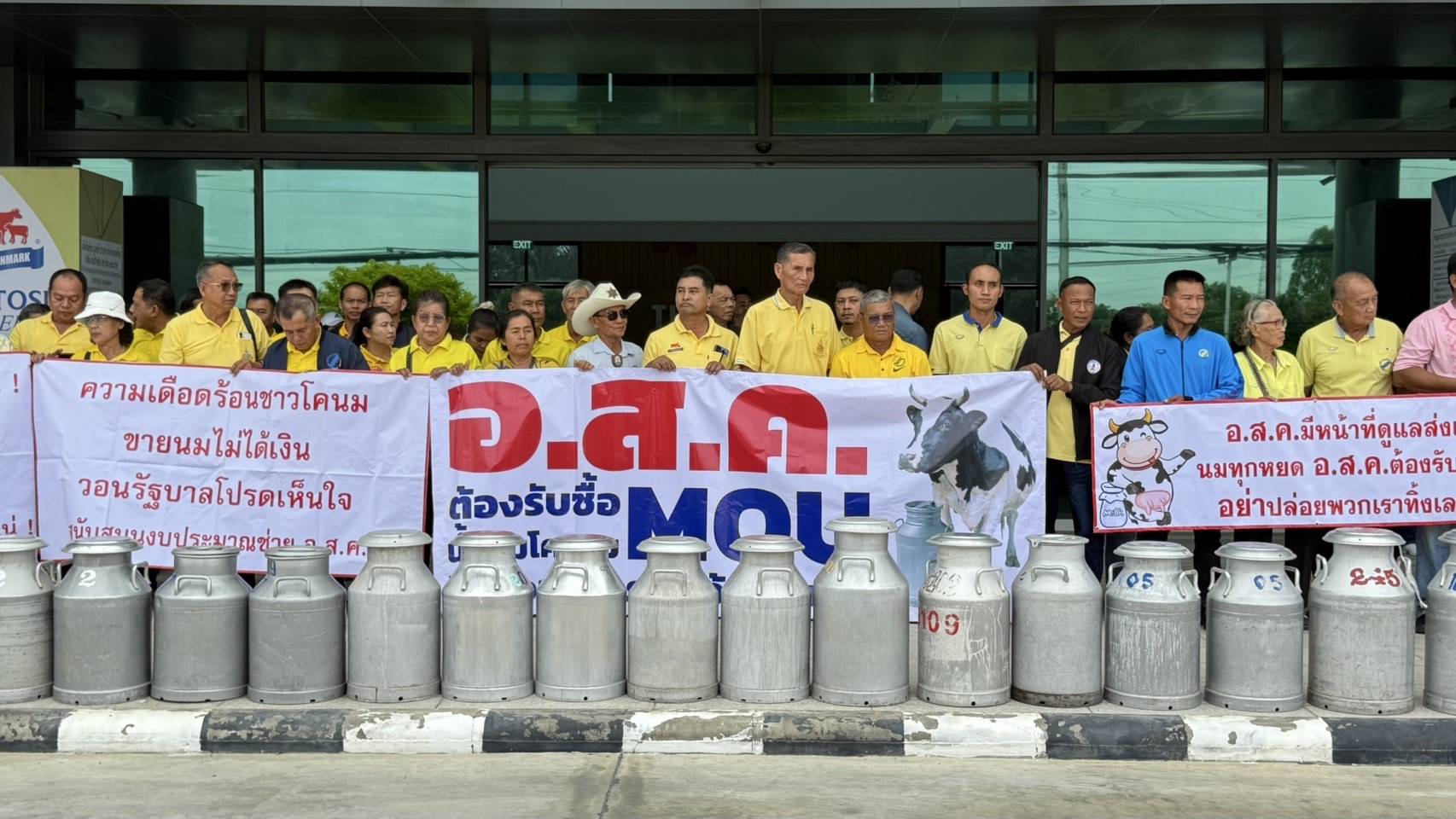 วันที่ 23 กันยายน 68 ผู้สื่อข่าวรายงานว่าที่ องค์การส่งเสริมกิจการโคนมแห่งประเทศไทย (อ.ส.ค.) ต.คลองหนึ่ง อ.คลองหลวง จ.ปทุมธานี ชาวสมาชิกสหกรณ์สมาชิกชุมนุมสหกรณ์นมไทย - เดนมาร์ค จำกัด (เขตภาคกลาง) จำนวน 15 สหกรณ์กว่า 100 รายที่ได้นำนมสดมาเทบริเวณหน้า องค์การส่งเสริมกิจการโคนมแห่งประเทศไทย (อ.ส.ค.) พร้อมนำป้ายมายืนประท้วงหลังได้รับผลกระทบจากหนี้ค้างค่าน้ำนมดิบของ องค์การส่งเสริมกิจการโคนมแห่งประเทศไทย(อ.ส.ส.ค.) กับ สหกรณ์ จำนวนเงินทั้งสิ้นกว่า 600 กว่าล้านบาท โดยมี นายธีระชัย เกรียงไกรเวคิน ประธานกรรมการชุมนุมสหกรณ์นมไทย - เดนมาร์ค จำกัด ยื่นหนังสือพร้อมกับเทนมเพื่อประท้วงถึงเรื่องดังกล่าว