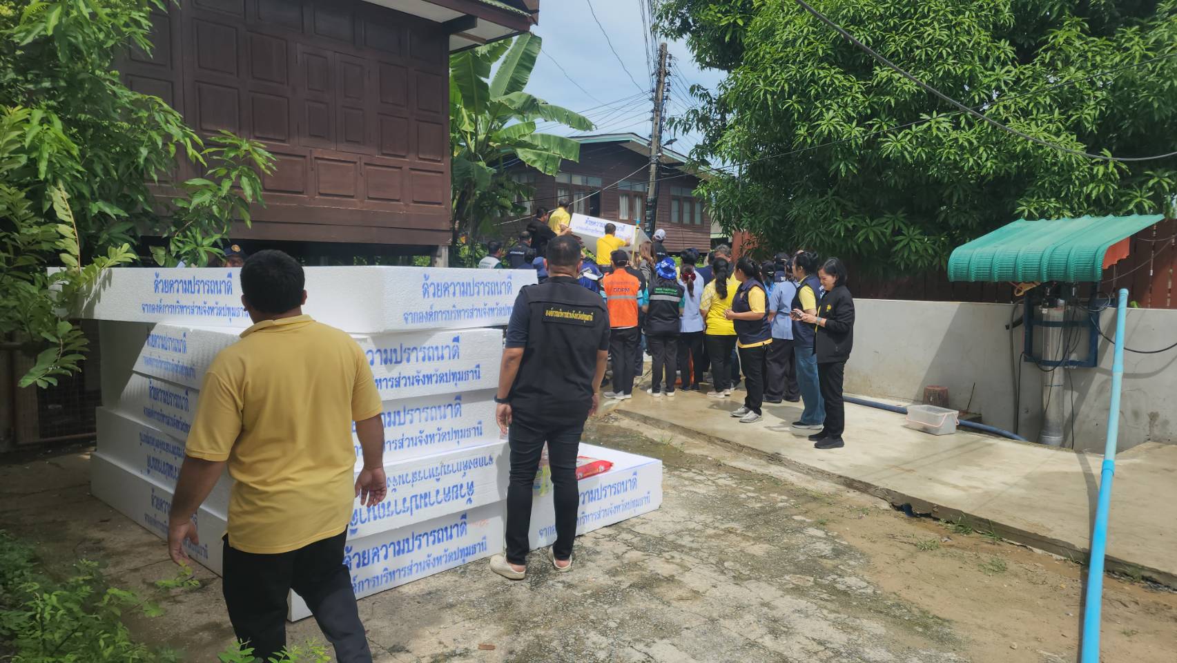 เมื่อเวลา 10.30 น. วันที่ 8 ตุลาคม 2568 ที่ วัดน้ำวน ต.บางเดื่อ อ.เมือง จ.ปทุมธานี พลตำรวจโท คำรณวิทย์ ธูปกระจ่าง นายก อบจ.ปทุมธานี พร้อมด้วย นายนพพร ขาวขำ รองนายก อบจ.ปทุมธานี นางสาวพัชร์ชิสา พชิระธารีรัตน์ รองนายก อบจ.ปทุมธานี สมาชิกสภา อบจ.ปทุมธานี หัวหน้าส่วนราชการ นายแพทย์นนท์ จินดาเวช นายแพทย์สาธารณสุขจังหวัดปทุมธานี พม.ปทุมธานี ปภ.ปทุมธานี ท้องถิ่นจังหวัดปทุมธานี ลงพื้นที่ช่วยเหลือประชาชนพร้อมทั้งส่งมอบ แพโฟม ให้ประชาชนริมแม่น้ำเจ้าพระยา เพื่อบรรเทาความเดือดร้อนจากการระบายน้ำของเขื่อนเจ้าพระยาที่มีปริมาณเพิ่มมากขึ้นต่อเนื่องรวมทั้งน้ำทะเลหนุนสูงในช่วงนี้ และฝนที่คาดว่าจะตกจากผลกระทบของ พายุ แมตโม ซึ่งที่บริเวณชุมชนวัดน้ำวน ถือเป็นจุดหนึ่งที่มีพื้นที่ต่ำ ในเขต อ.เมืองปทุมธานี ในชุมชนบางจุดน้ำท่วมสูงกว่า 1 เมตร โดยแต่ละแห่งที่ชาวบ้านมารอรับแพโฟมเป็นจำนวนมาก