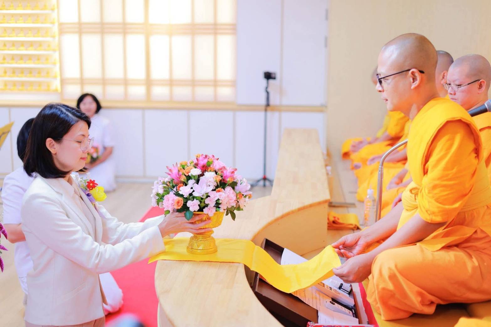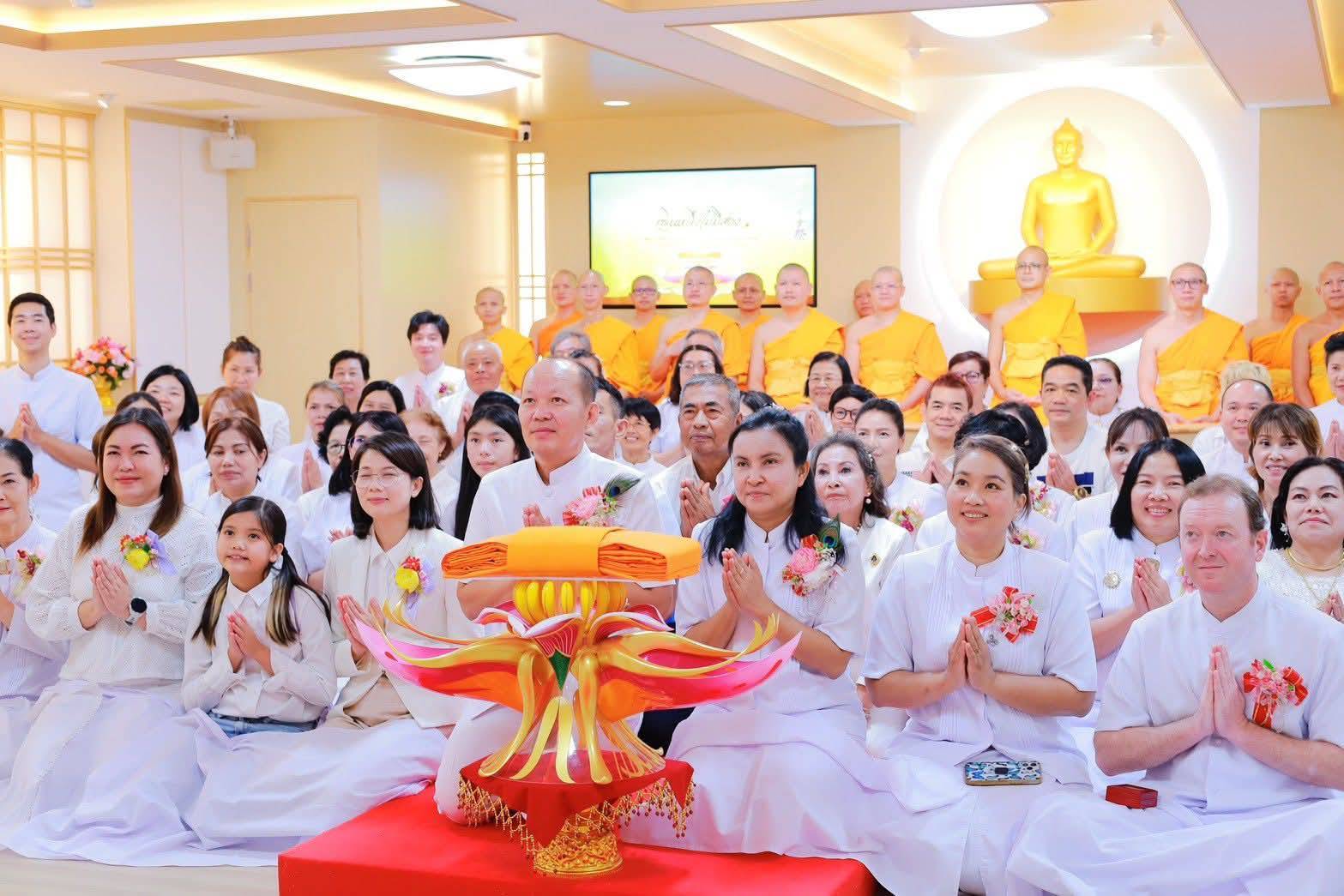โดยงานบุญพิธีจัดขึ้นในวันที่ 19 ตุลาคม ที่ผ่านมาได้รับเกียรติจาก น.ส.พักตร์ประไพ คำบรรลือ รองกงสุลใหญ่นครโอซาก้า พร้อมด้วย น.ส.วีนัส อัศวภูมิ กงสุลนครโอซาก้า เป็นประธานเปิดพิธีทอดกฐินสามัคคีหนึ่งไม่มีสอง เพื่อปฏิสังขรณ์หอฉันคุณยายอาจารย์ฯ ที่วัดพระธรรมกายโอซาก้า ประเทศญี่ปุ่น โดยได้รับเกียรติจากคุณวริศ เจริญกัลป์ นายกเทศมนตรีตำบลหนองเสือ และคุณโสภิตา เจริญกัลป์ รองนายกเทศมนตรีตำบลหนองเสือ ประธานเอกนำผ้ากฐินมาทอดถวาย พร้อมด้วยพุทธศาสนิกชนชาวไทย,ญี่ปุ่น,อเมริกัน กว่า 150 ท่านร่วมถวายบริวารกฐิน