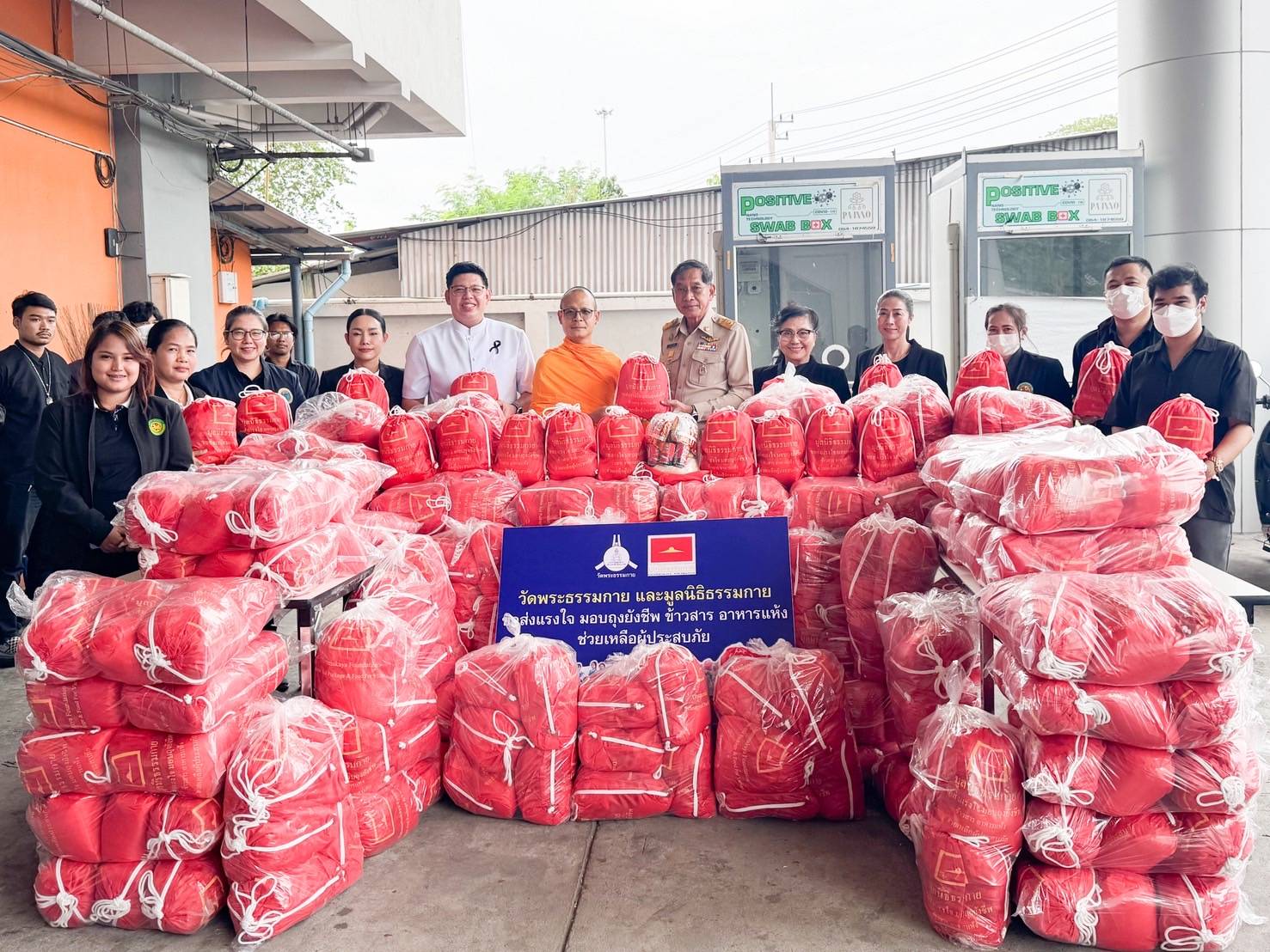 ในการนี้ได้รับเกียรติจากพลตำรวจโทคำรณวิทย์ ธูปกระจ่าง นายกองค์การบริหารส่วนจังหวัดปทุมธานี พร้อมด้วย นางสาวพัชร์ชิสา พชิระธารีรัตน์ รองนายกองค์การบริหารส่วนจังหวัดปทุมธานี ร่วมรับมอบถุงยังชีพ โอกาสนี้ นางสาวอภิสรา เกษอินทร์ นายอำเภอคลองหลวง และนางสาวกุลสิริ สิริรัศมิกุล ประธานชมรมรักษ์บวร รักษ์ศีล 5 ปทุมธานี ในอุปถัมภ์พระธรรมรัตนาภรณ์ ในนามองค์กรภาคีเครือข่าย “บวร” ได้ร่วมส่งมอบถุงยังชีพด้วย เพื่อร่วมเป็นกำลังใจแก่ผู้ประสบภัยและสนับสนุนการดำเนินงานช่วยเหลือประชาชนในพื้นที่