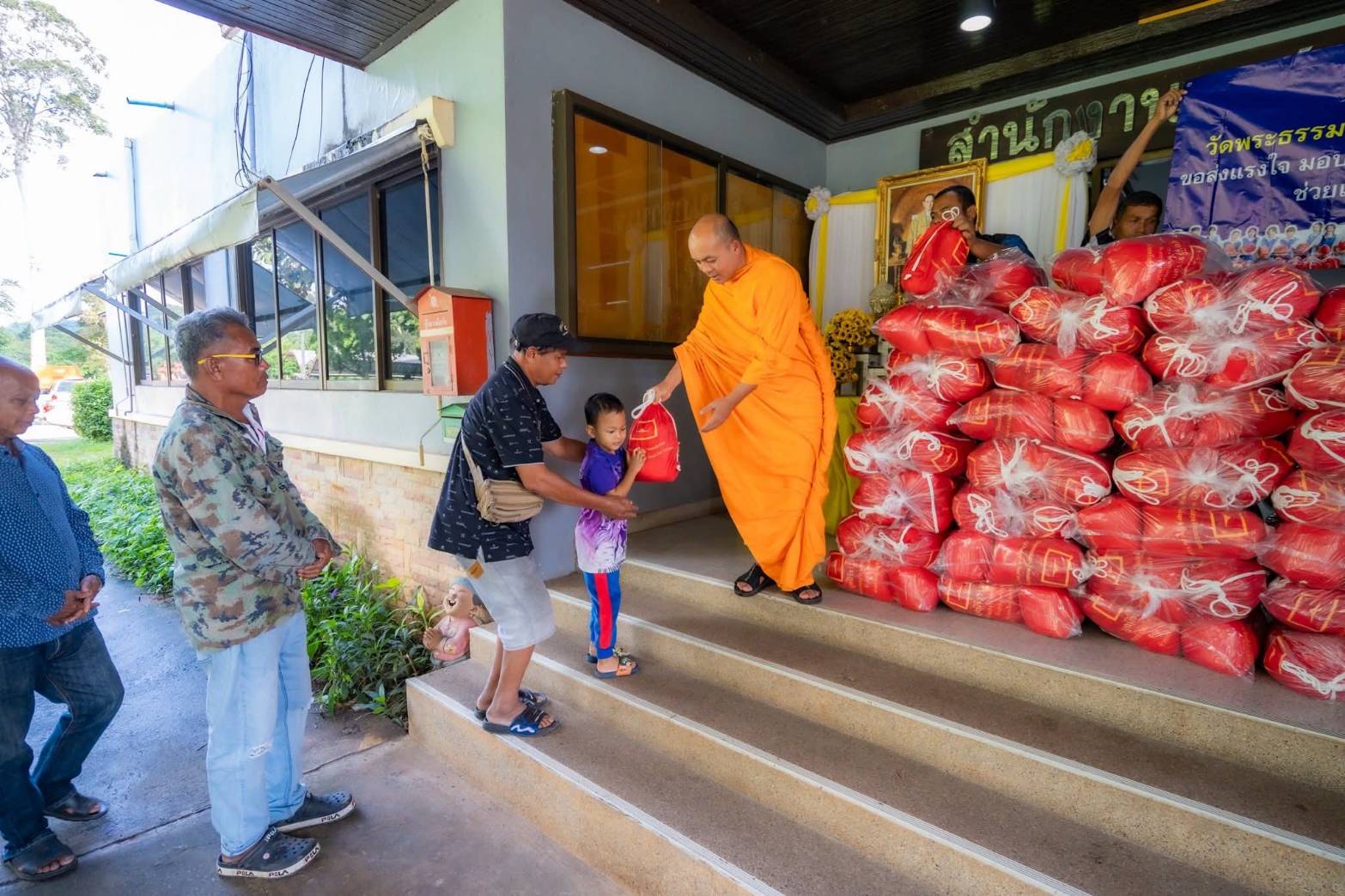 โดยพระครูปลัดรัตนวีรวัฒน์ เจ้าอาวาสวัดพระธรรมกาย มอบหมายให้พระครูสมุห์สมชาย วํสธีโร ผู้ช่วยผู้อำนวยการสำนักองค์ประธาน เป็นผู้แทนในการส่งมอบถุงยังชีพ ข้าวสาร อาหารแห้ง และสิ่งของเครื่องใช้ที่จำเป็น รวมจำนวน 300 ชุด ให้แก่คณะผู้แทนจากศูนย์ส่งเสริมศีลธรรมจังหวัดนครราชสีมา เพื่อกระจายความช่วยเหลือต่อไปยังผู้ประสบภัยในพื้นที่ตำบลหมูสีและตำบลขนงพระ อำเภอปากช่อง ซึ่งได้รับผลกระทบจากน้ำป่าไหลหลากเมื่อค่ำวันที่ 2 พฤศจิกายนที่ผ่านมา