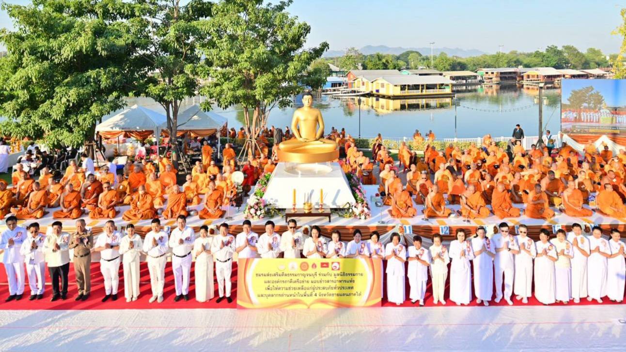 วันที่ 20 ธันวาคม 2568 พระครูสมุห์สนิทวงศ์ วุฑฺฒิวัฒิโส ผู้อำนวยการสำนักสื่อสารองค์กร วัดพระธรรมกาย จังหวัดปทุมธานี ในฐานะฝ่ายประชาสัมพันธ์โครงการตักบาตรพระ 2 ล้านรูป 77 จังหวัดทุกวัดทั่วไทย กล่าวถึง โครงการตักบาตรพระ 10,000 รูป เนื่องในโอกาส 194 ปี แห่งการก่อตั้งเมืองกาญจนบุรี อุทิศถวายเป็นพระราชกุศลแด่สมเด็จพระนางเจ้าสิริกิติ์ พระบรมราชินีนาถ พระบรมราชชนนีพันปีหลวง และเพื่อนำของที่ได้ไปช่วยเหลือผู้ประสบภัยในทุกภูมิภาคของประเทศ ณ ลานกิจกรรม Sky Walk โซนปลายสักทอง จังหวัดกาญจนบุรี