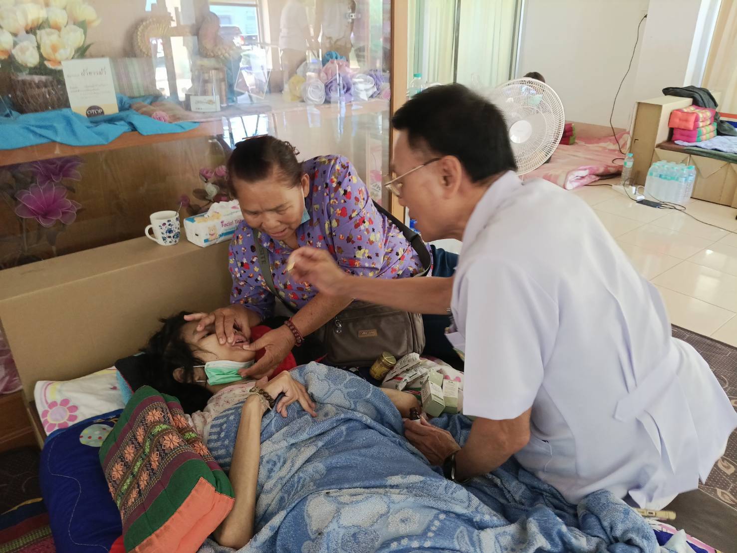 ซึ่ง วันที่ 18 ธค มีผู้ป่วยโรคพาร์กินสัน เพศหญิง อายุ 74 ปี มีอาการสั่นเกรง ทรงตัวไม่ได้จึงคลาน จากเต็นท์ที่พักพิงมาหาหมอ เนื่องจากไม่สามารถเดินได้ หมอได้ทำการรักษาโดยให้ CBD Oil 10% ปริมาณ 5 หยด แก่ผู้ป่วย
