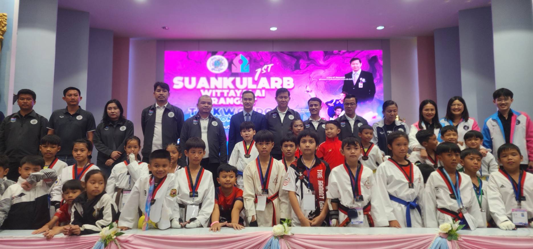 เมื่อเวลา 13.00 น. วันที่ 20 ธันวาคม 2568 ที่ ห้องประชุมแกรด์ กาล่า โรส ชั้น 4 อาคารสิรินธร 2 โรงเรียนสวนกุหลาบวิทยาลัย รังสิต ชมรมศิษย์เก่านักกีฬาเทควันโดโรงเรียนสวนกุหลาบวิทยาลัย รังสิต นำโดย พันตำรวจตรีชัชวาล ขาวลออ โค้ชนักกีฬาเทควันโดทีมชาติไทยและศิษย์เก่าโรงเรียนสวนกุหลาบวิทยาลัย รังสิต จัดการแข่งขัน 1st Suankularb Wittayalai Rangsit Taekwondo Championship 2025 ขึ้น โดยมี นายชาลี วัฒนเขจร ผู้อำนวยการโรงเรียนสวนกุหลาบวิทยาลัย รังสิต เป็นประธานเปิดการแข่งขัน พร้อมด้วย คณะผู้บริหารโรงเรียน ผู้แทนชมรมศิษย์เก่านักกีฬาเทควันโดโรงเรียนสวนกุหลาบวิทยาลัย รังสิต ผู้ปกครอง และ นักกีฬา ให้การต้อนรับ