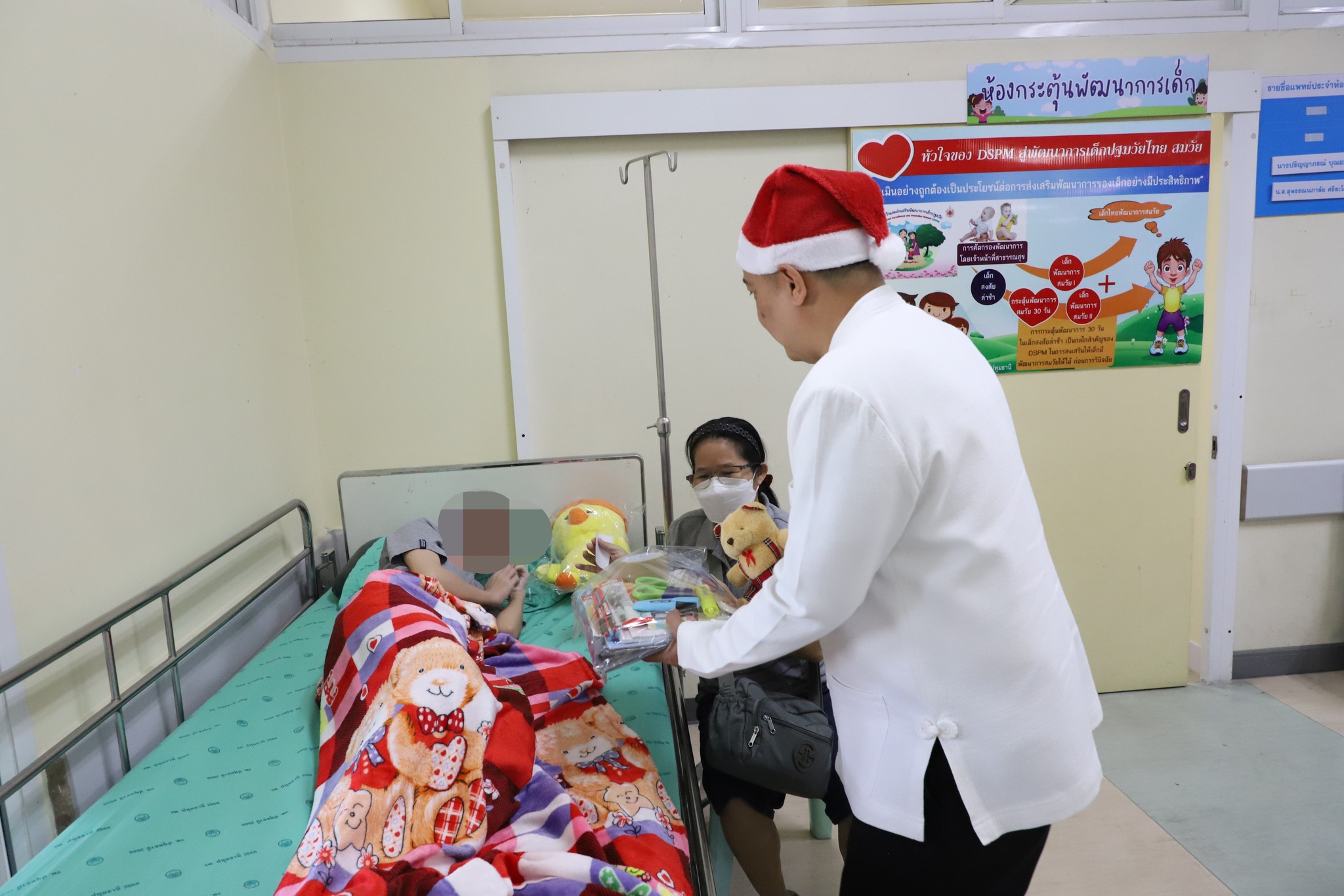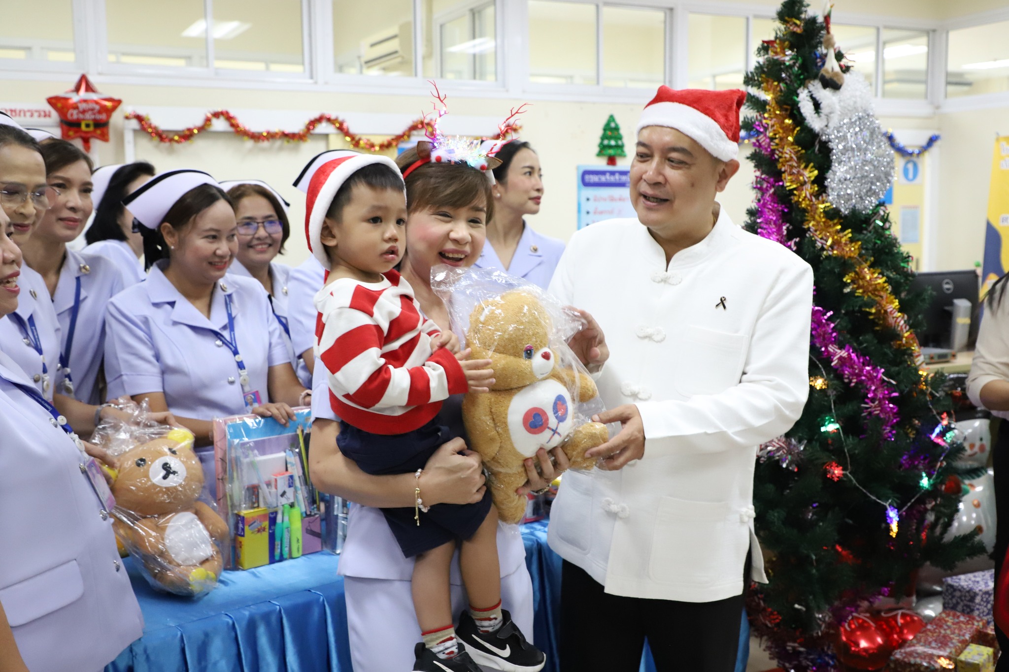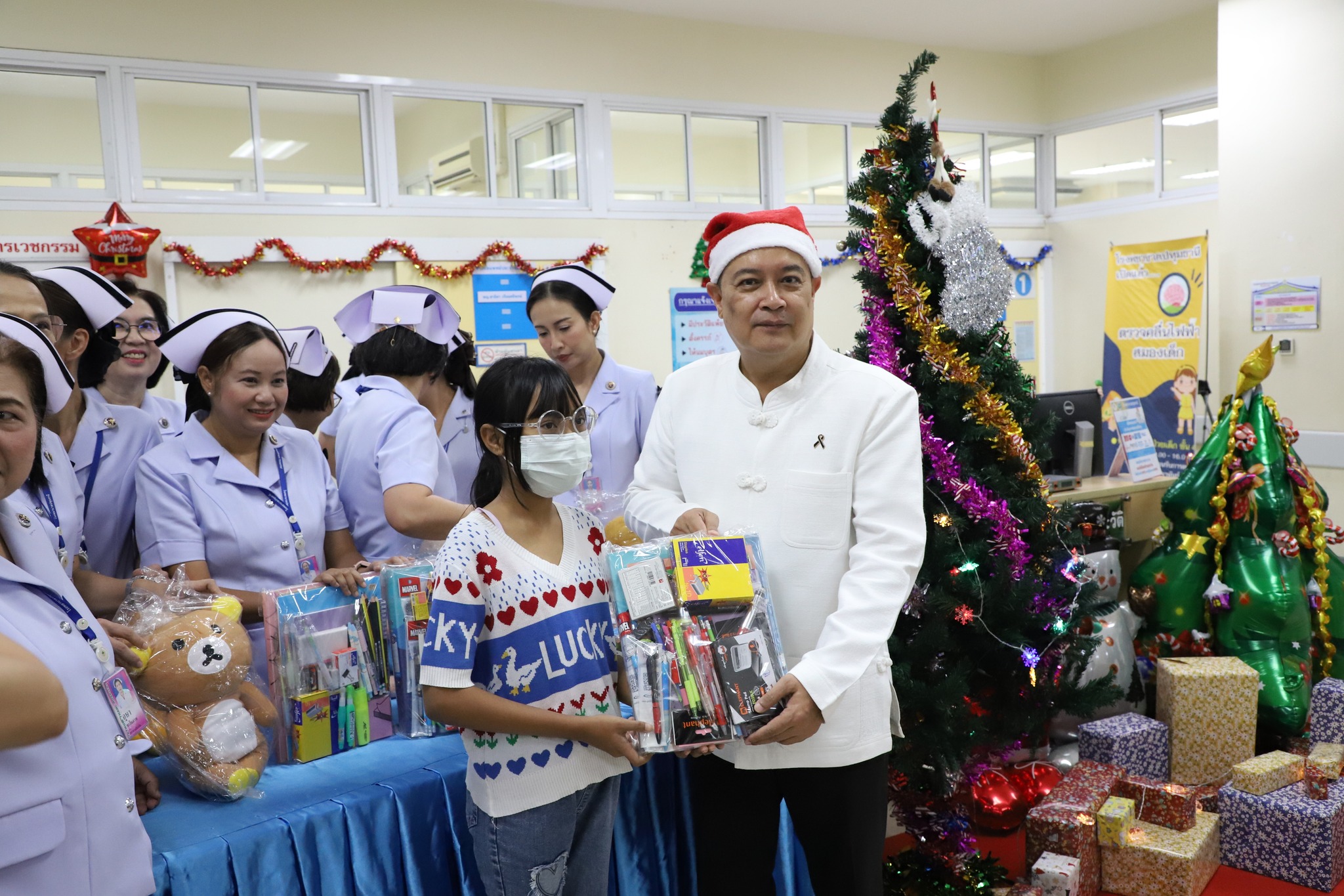 บรรยากาศแห่งความอบอุ่นและรอยยิ้มเกิดขึ้นในโรงพยาบาล กิจกรรมดังกล่าวมีคณะแพทย์ พยาบาล และบุคลากรทางการแพทย์ร่วมให้การต้อนรับอย่างใกล้ชิด เด็ก ๆ ต่างมีรอยยิ้มสดใสเมื่อได้รับตุ๊กตาในมือ ขณะที่ผู้ปกครองต่างรู้สึกซาบซึ้งและมีกำลังใจมากขึ้น ท่ามกลางช่วงเวลาที่ต้องดูแลบุตรหลานซึ่งเจ็บป่วย ซึ่งเด็กป่วยถือเป็นกลุ่มที่ต้องการกำลังใจเป็นพิเศษ โดยเฉพาะในช่วงเทศกาลแห่งความสุข เนื่องจากเด็กบางคนไม่สามารถออกไปเที่ยวหรือร่วมกิจกรรมเฉลิมฉลองได้เหมือนเด็กทั่วไป การมอบของขวัญเล็ก ๆ แม้จะไม่ใช่สิ่งที่มีมูลค่าสูง แต่สามารถสร้างพลังใจ ความหวัง และรอยยิ้ม ซึ่งเป็นสิ่งสำคัญต่อกระบวนการฟื้นฟูทั้งร่างกายและจิตใจ ช่วยผ่อนคลายความตึงเครียด ลดความกังวล และส่งผลดีต่อสภาพจิตใจของเด็กป่วยอย่างชัดเจน ถือเป็นอีกหนึ่งพลังบวกที่ช่วยเสริมการรักษาพยาบาลได้เป็นอย่างดี