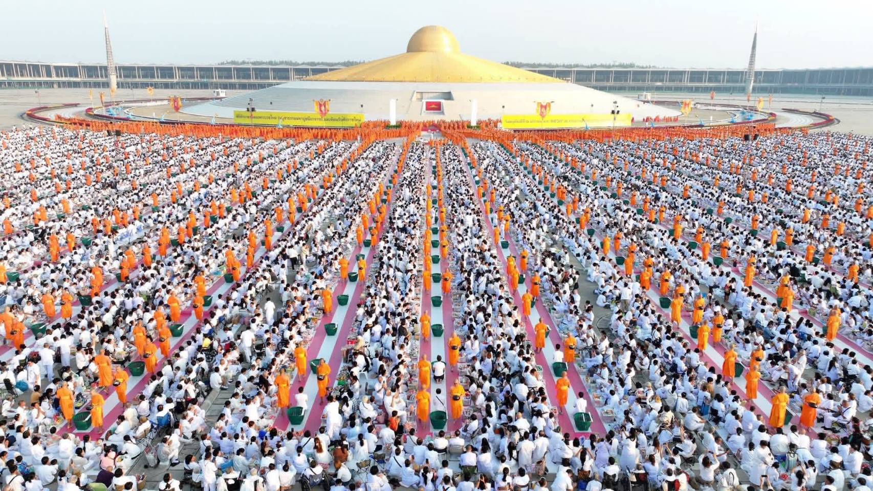 วันที่ 1 มกราคม 2569 ที่ลานธรรมพระมหาธรรมกายเจดีย์ วัดพระธรรมกาย ตำบลคลองสาม อำเภอคลองหลวง จังหวัดปทุมธานี พุทธศาสนิกชนกว่า 10,000 คน ร่วมทำบุญตักบาตรพระ 3,000 รูป ต้อนรับศักราชใหม่ 2569 อาหารแห้งที่ได้จากพิธีตักบาตรนำไปช่วยเหลือผู้ประสบภัยในภูมิภาคต่าง ๆ ทั่วประเทศ