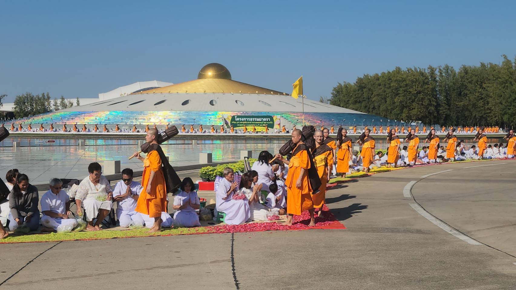 วันที่ 2 มกราคม 2569 ที่วัดพระธรรมกาย ตำบลคลองสาม อำเภอคลองหลวง จังหวัดปทุมธานี พุทธศาสนิกชนร่วมต้อนรับพระธรรมยาตรา จำนวน 1,142 รูป พระบวชใหม่ในโครงการธรรมยาตรา กตัญญูบูชา มหาปูชนียาจารย์ พระมงคลเทพมุนี (สด จนฺทสโร) พระผู้ปราบมาร อนุสรณ์สถาน 7 แห่ง ปีที่ 14 เป็นปฐมเริ่ม ณ วัดพระธรรมกาย สถานที่ขยายวิชชาธรรมกาย อนุสรณ์สถานลำดับที่ 7