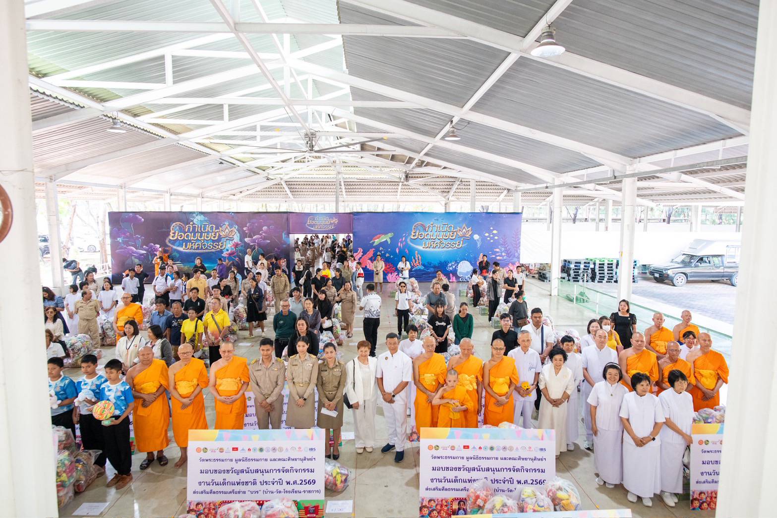 วันที่ 5 มกราคม 2569 ณ อาคารโถงช้าง วัดพระธรรมกาย อำเภอคลองหลวง จังหวัดปทุมธานี พระครูปลัดรัตนวีรวัฒน์ เจ้าอาวาสวัดพระธรรมกาย เป็นประธานสงฆ์ และ นายดงพล รุจิธรรมธัช รองผู้ว่าราชการจังหวัดปทุมธานี ผู้แทนผู้ว่าราชการจังหวัดปทุมธานี เป็นประธานในพิธีมอบของขวัญสนับสนุนการจัดกิจกรรมงานวันเด็กแห่งชาติ ประจำปี พ.ศ. 2569 ให้แก่องค์กรภาคีเครือข่ายกว่า 200 องค์กร ภายใต้แนวคิด “รักชาติไทย ใส่ใจโลก” เพื่อส่งเสริมการพัฒนาเด็กและเยาวชนอย่างรอบด้าน