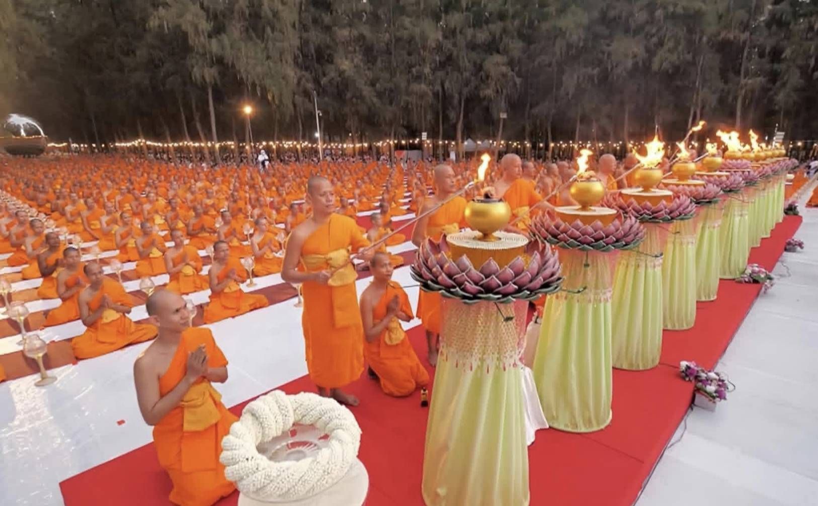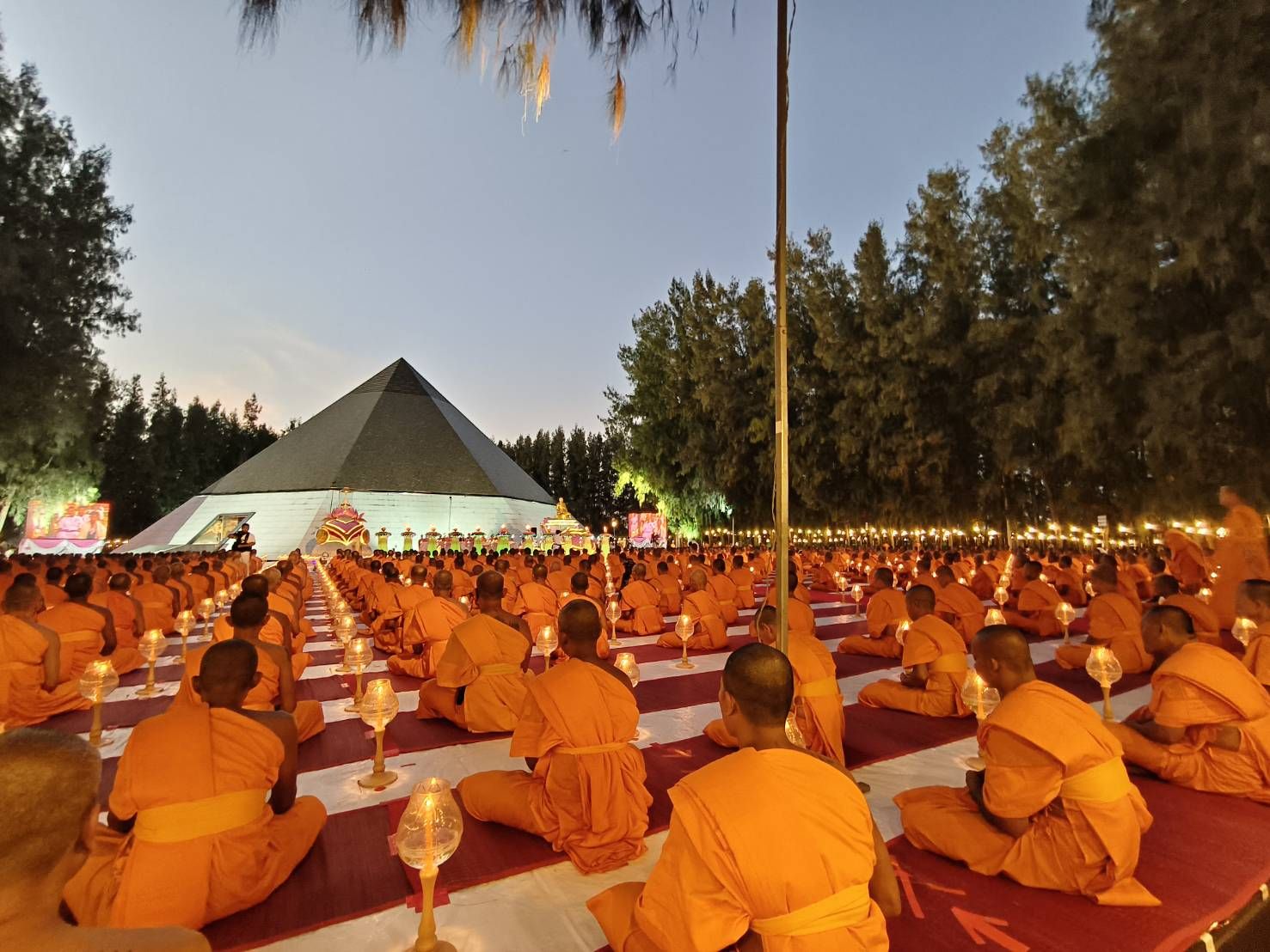 บรรยากาศภายในพิธี พระภาวนาธรรมวิเทศ ผู้ช่วยเจ้าอาวาสวัดพระธรรมกาย นำคณะสงฆ์ธรรมยาตรา 1,142 รูป พร้อมด้วยสาธุชน ร่วมเจริญสมาธิภาวนาและอธิษฐานจิต ณ อนุสรณ์สถานพระมงคลเทพมุนี อำเภอสองพี่น้อง จังหวัดสุพรรณบุรี โดยมีนายณัฐพงษ์ สงวนจิตร ผู้ว่าราชการจังหวัดสุพรรณบุรี เป็นประธานฝ่ายฆราวาส