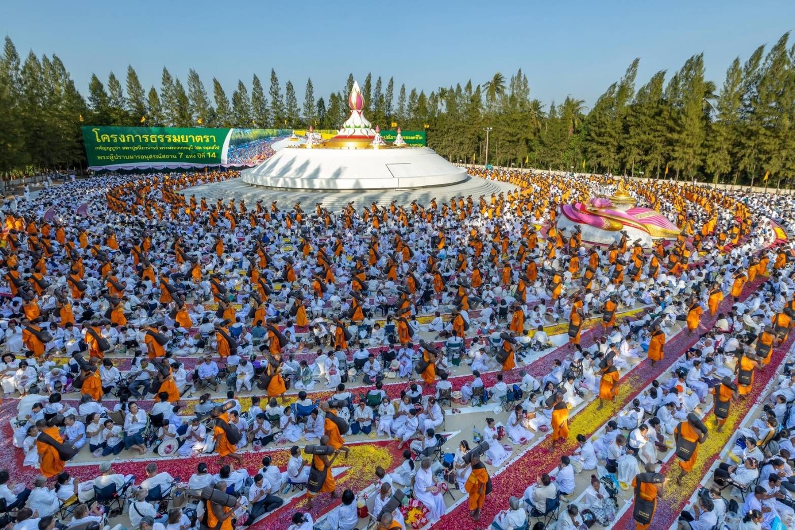 บรรยากาศภายในพิธีเป็นไปด้วยความสงบและเปี่ยมด้วยศรัทธา พระครูธรรมธรอารักษ์ ญาณารักโข ผู้ช่วยเจ้าอาวาสวัดพระธรรมกาย นำคณะสงฆ์ธรรมยาตรา 1,142 รูป และสาธุชน เจริญสมาธิภาวนา อธิษฐานจิตอุทิศถวายเป็นพระราชกุศล โดยมีนายเผด็จ ลายทอง รองปลัดกระทรวงทรัพยากรธรรมชาติและสิ่งแวดล้อม เป็นประธานฝ่ายฆราวาส
