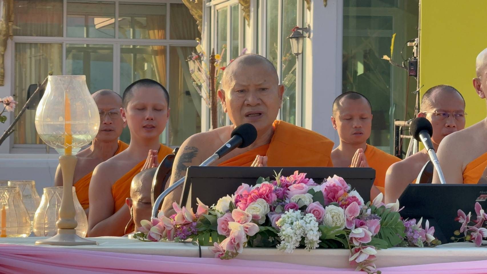 สำหรับบรรยากาศในพิธี พระครูสมุห์ธานินทร์ ปุญฺญนนฺโท ผู้ช่วยเจ้าอาวาสวัดพระธรรมกาย นำคณะสงฆ์ธรรมยาตรา 1,142 รูปและสาธุชน เจริญสมาธิภาวนา อธิษฐานจิตอุทิศถวายเป็นพระราชกุศลแด่สมเด็จพระนางเจ้าสิริกิติ์ พระบรมราชินีนาถ พระบรมราชชนนีพันปีหลวง โดยมีนายณัฐพงษ์ สงวนจิตร ผู้ว่าราชการจังหวัดสุพรรณบุรี เป็นประธานฆราวาส ณ วัดสองพี่น้อง จ.สุพรรณบุรี ต่อมาพระปริยัติวรคุณ เจ้าคณะอำเภอสองพี่น้อง เจ้าอาวาสวัดสองพี่น้อง น้อมนำพวงมาลัยถวายบูชาพระบรมสารีริกธาตุ และรูปหล่อพระมงคลเทพมุนี (สด จนฺทสโร) และนำคณะสงฆ์ธรรมยาตรา 1,142 รูป พร้อมด้วยพุทธศาสนิกชนจุดประทีปถวายเป็นพุทธบูชา และบูชาธรรมพระมงคลเทพมุนี (สด จนฺทสโร)
