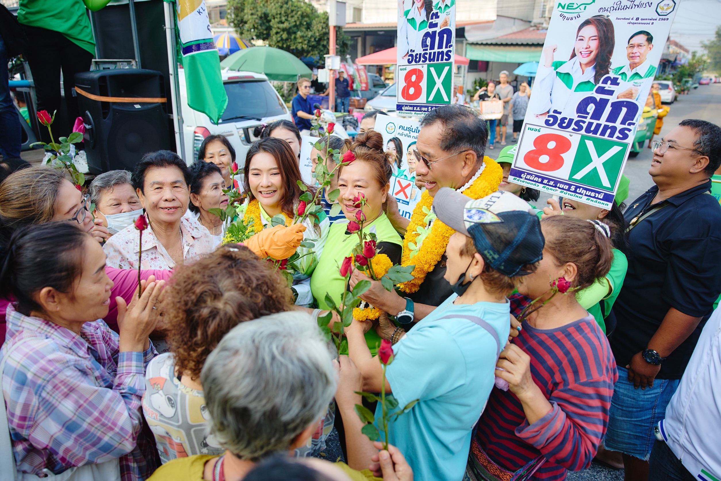 เมื่อวันที่ 31 ม.ค. ที่ จ.ปทุมธานี พล.ต.ท.คำรณวิทย์ ธูปกระจ่าง นายกองค์การบริหารส่วนจังหวัดปทุมธานี ลงพื้นที่ช่วยหาเสียงให้กับ น.ส.อัยรินทร์ พันธุ์ฤทธิ์ ผู้สมัคร ส.ส. เขต 5 หมายเลข 8 พรรคกล้าธรรม อดีตรองโฆษกประจำสำนักนายกรัฐมนตรี ในช่วงโค้งสุดท้ายของการเลือกตั้ง โดยจัดคาราวานรถแห่พบปะประชาชนตามชุมชนและตลาดสำคัญ เพื่อประชาสัมพันธ์นโยบายพรรค และแนวทางแก้ไขปัญหาในระดับพื้นที่ โดยเฉพาะด้านสาธารณูปโภค การบริหารจัดการน้ำ และการประสานงานกับหน่วยงานภาครัฐ