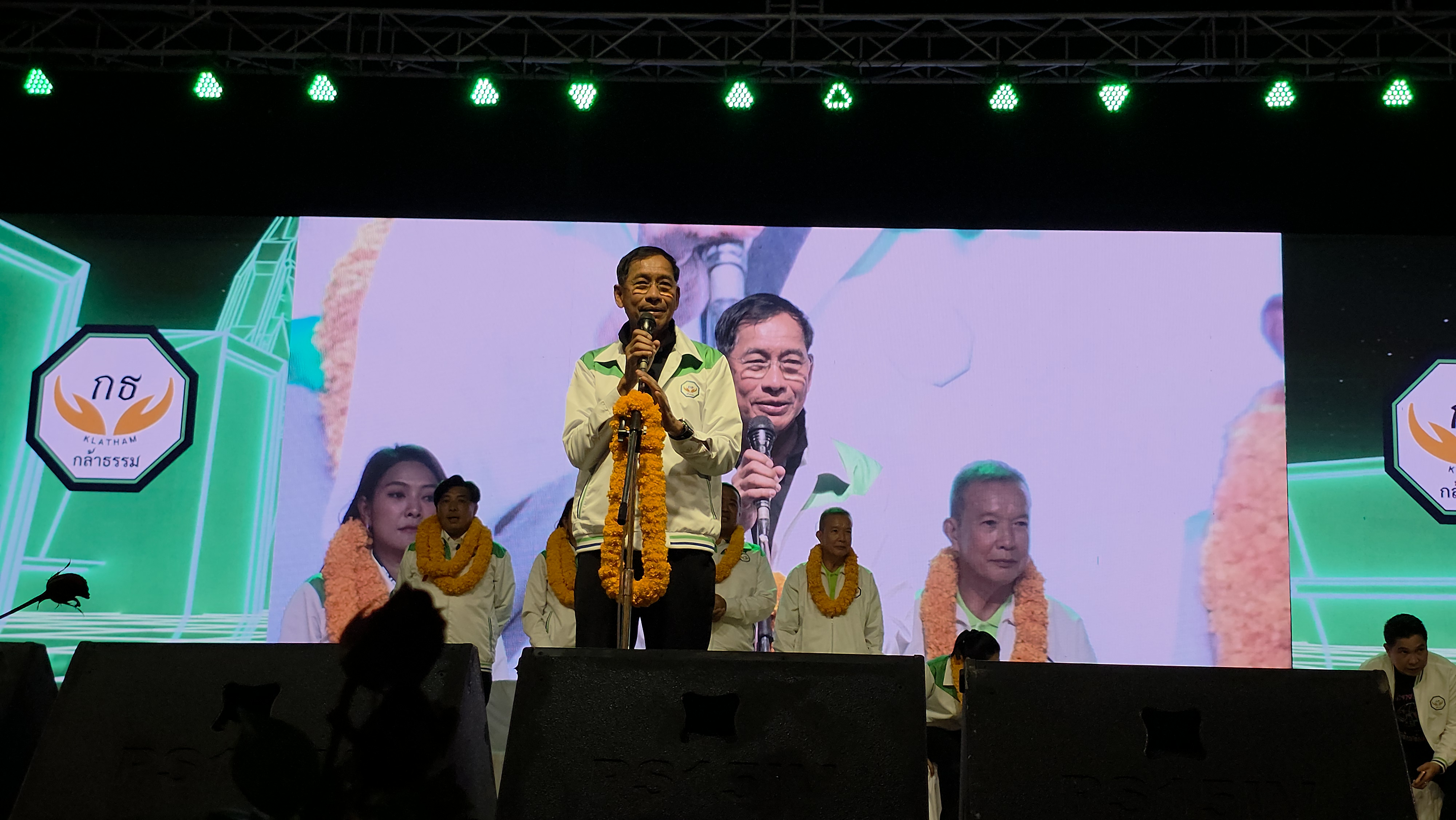 โดย ร.อ.ธรรมนัส พรหมเผ่า ประธานที่ปรึกษาพรรคกล้าธรรม ขึ้นปราศรัยท่ามกลางมวลชนกว่า 20,000 คน โดยมีเนื้อหาสำคัญที่เน้นย้ำถึงความเป็น "ตัวจริง" พร้อมประกาศตัวเป็นพรรคปฏิบัติการ วันนี้พรรคกล้าธรรมไม่ได้มาเพื่อขายฝัน นโยบายที่เราพูดบนเวทีนี้ไม่ใช่แค่ตัวหนังสือในใบปลิว แต่คือสิ่งที่เราทำมาแล้วและกำลังจะทำให้ดีขึ้น ผมพูดเสมอว่า 'เราพูดน้อยแต่ทำจริง' ปทุมธานีไม่ต้องรอคำพูดสวยหรู แต่ปทุมธานีต้องการคนที่เดินลงไปในนา เดินลงไปในน้ำ และแก้ปัญหาให้พี่น้องได้ทันที”พร้อม ตอบโต้กระแสพรรคการเมืองใหญ่ (สีส้ม-สีแดง) “ใครจะบอกว่าปทุมธานีเป็นของพรรคไหน ผมไม่สน ใครจะบอกว่าเป็นพื้นที่สีส้มหรือสีแดง นั่นเรื่องของเขา แต่สำหรับผม ปทุมธานีต้องเป็นพื้นที่ของ 'คนทำงาน' วันนี้ผมมาที่นี่เพื่อพิสูจน์ว่า กระแสหรือจะสู้ความตั้งใจจริง วันนี้คนปทุมฯ ตาสว่างแล้ว เขาเลือกคนที่พึ่งได้ตอนน้ำท่วม เลือกคนที่พึ่งได้ตอนราคาข้าวตกต่ำ ไม่ใช่เลือกคนที่มาหาเสียงแค่ตอนฤดูกาลเลือกตั้งแล้วหายหัวไป!” ย้ำความสัมพันธ์กับ “บิ๊กแจ๊ส” “ผมกับพี่แจ๊ส (พล.ต.ท.คำรณวิทย์) เราคุยกันด้วยภาษาคนทำงาน เรามองเห็นปัญหาเดียวกันคือการบริหารจัดการน้ำและปากท้อง วันนี้เราผนึกกำลังกัน พรรคกล้าธรรมส่งคนพื้นที่แท้ๆ ลงสมัคร เพราะเราเชื่อว่าคนปทุมต้องดูแลคนปทุม ใครจะมากล่าวหาว่าเราเป็นบ้านใหญ่หรือเป็นลุงอะไรก็แล้วแต่ ผมบอกเลยว่า 'บ้านใหญ่' ของเราคือบ้านที่เปิดประตูรับความเดือดร้อนของประชาชนตลอด 24 ชั่วโมง ไม่ใช่บ้านที่ปิดเงียบรอสั่งการจากกรุงเทพฯ”