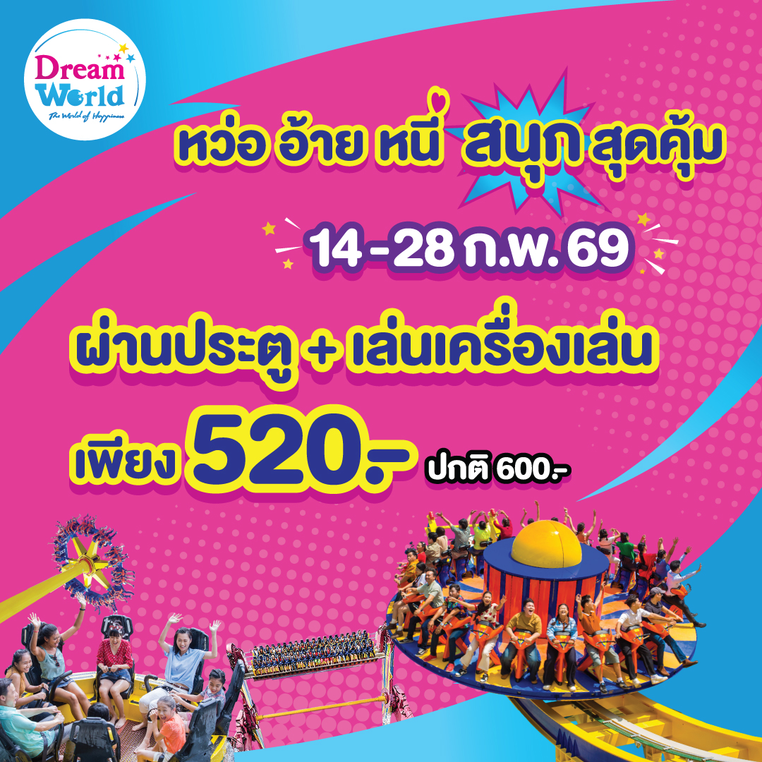 วันที่ 9 กุมภาพันธ์ 2569 ที่สวนสนุกดรีมเวิลด์ ตำบลบึงยี่โถ อำเภอธัญบุรี จังหวัดปทุมธานี ส่งโปรโมชั่นพิเศษ “หว่ออ้ายหนี่” ชวนคู่รักและครอบครัวมาสนุกสนานรับเทศกาลวันวาเลนไทน์และวันตรุษจีน ด้วยบัตรรวมเครื่องเล่นราคาพิเศษเพียง 520 บาท ตั้งแต่วันที่ 14-28 กุมภาพันธ์ 2569 ตัวเลข 520 หมายถึงคำบอกรักในภาษาจีน “ฉันรักเธอ” พร้อมเปิดประสบการณ์ความสุขเต็มรูปแบบกับเครื่องเล่นกว่า 25 รายการ ถือเป็นอีกหนึ่งกิจกรรมรับเทศกาลสำคัญของต้นปี