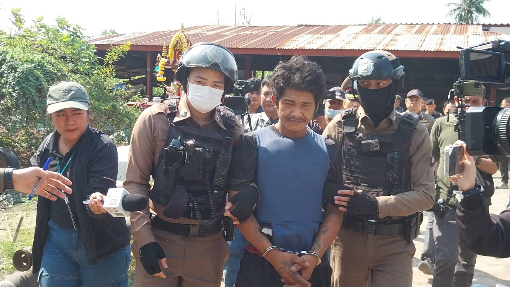 ผกก.สภ.ลาดหลุมแก้ว นำกำลังตำรวจนับสิบนายคุมตัว แอล ผู้ต้องหายิงกู้ภัยชลบุรีชี้จุดเกิดเหตุย่านระแหง เจ้าตัวหลั่งน้ำตากอดญาติภรรยา ก่อนเกิดเหตุวุ่นหน้าห้องขัง อ้างเครียดอยากพบหน้าลูกและกังวลเรื่องประกันตัว