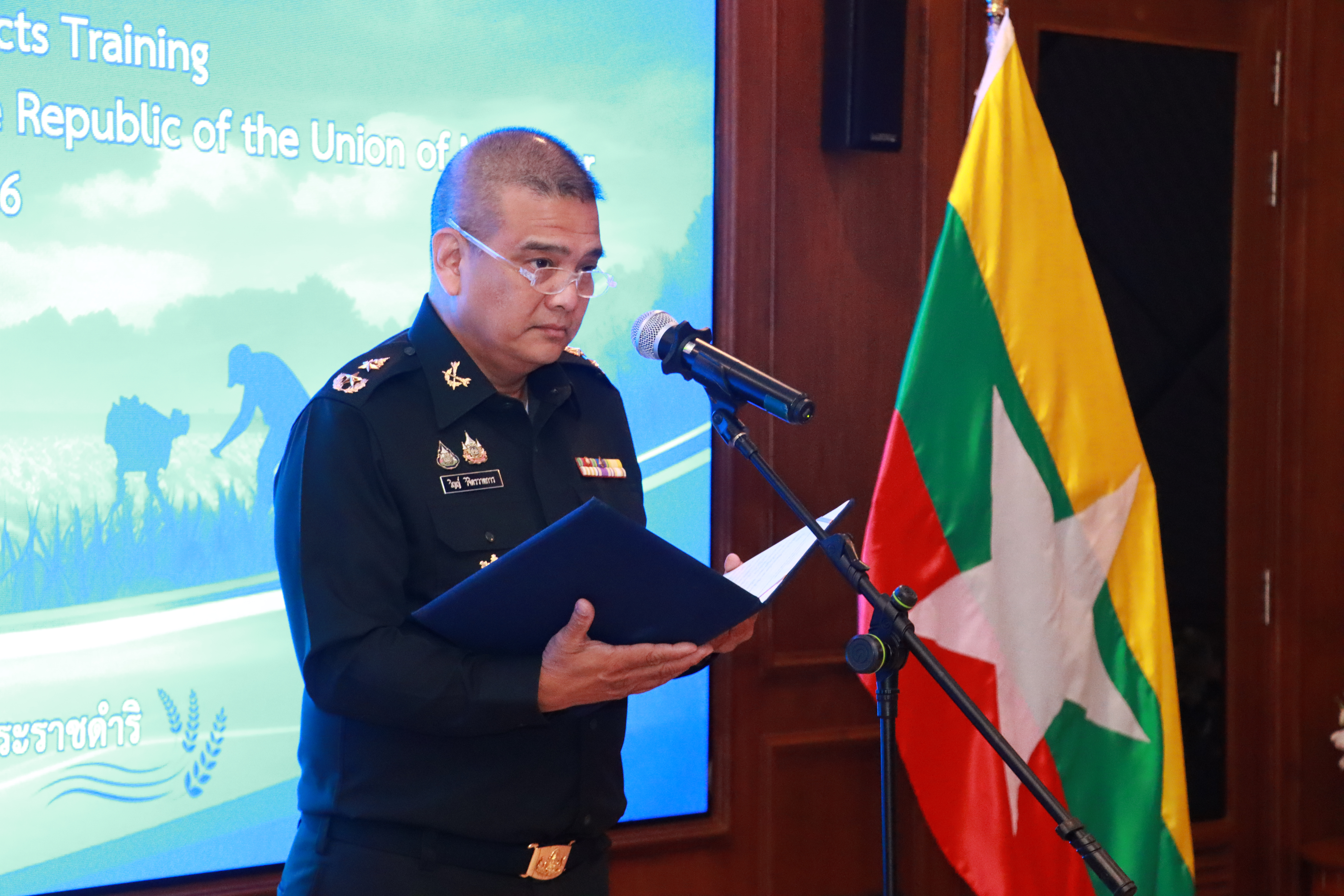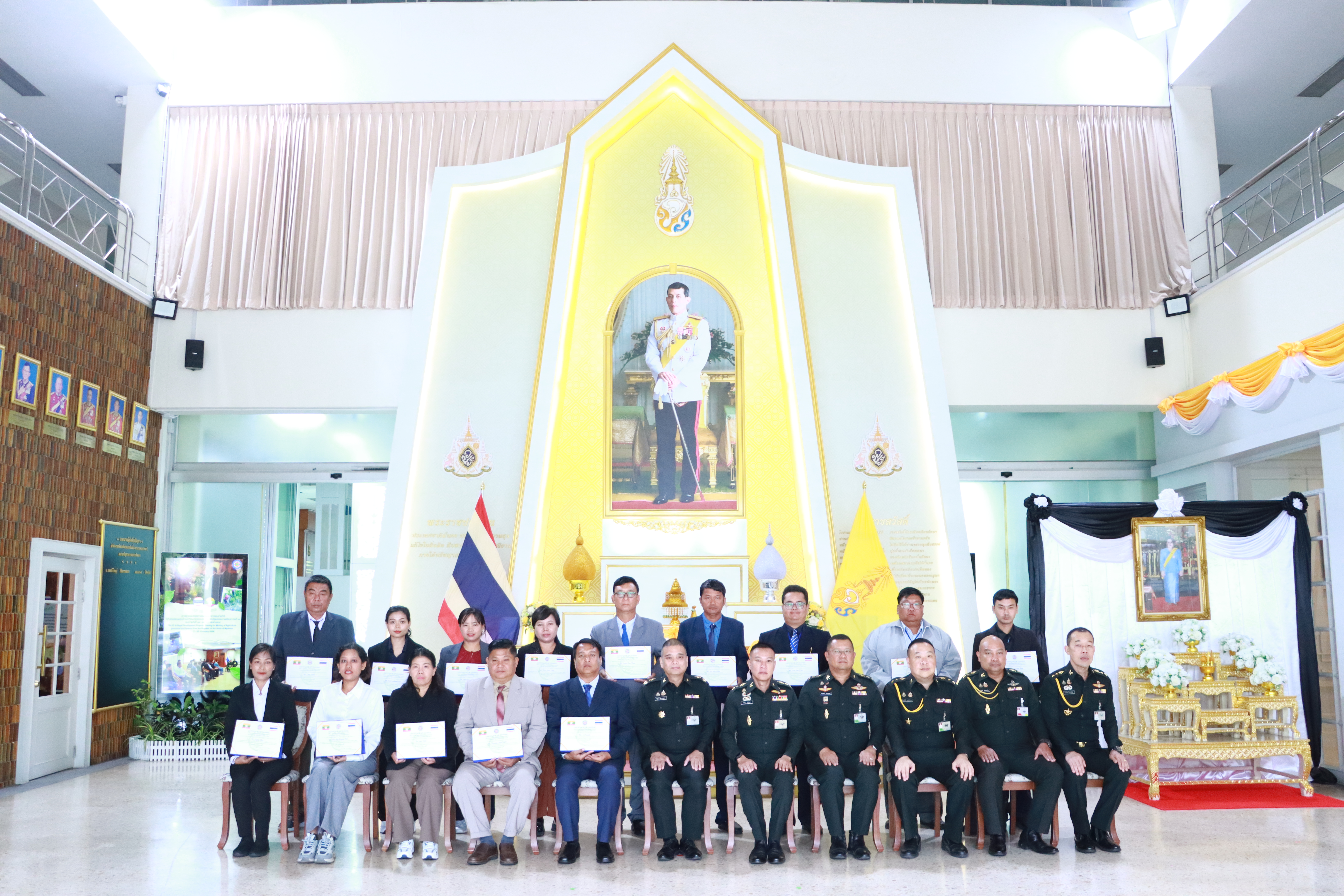 วันที่ 25 ก.พ. 69 บก.ทท. (นทพ.) โดย พล.ต.วิญญ์ วิจิตรวาทการ ผอ.สนร.นทพ. เป็นประธานในพิธีปิดและมอบวุฒิบัตรการฝึกอบรมโครงการอันเนื่องมาจากพระราชดำริ รุ่นที่ 12 แก่เกษตรกรและเจ้าหน้าที่กระทรวงเกษตรจากสาธารณรัฐแห่งสหภาพเมียนมา จำนวน 14 นาย ซึ่งการฝึกอบรมจัดขึ้นในห้วงวันที่ 17 – 25 กพ.69 โดยเน้นการถ่ายทอดองค์ความรู้ทั้งภาคทฤษฎี และภาคปฏิบัติ ครอบคลุมด้านเกษตรทฤษฎีใหม่และการปศุสัตว์ ณ ศูนย์การเรียนรู้ต้นแบบระดับประเทศ อาทิ ศูนย์ศึกษาการพัฒนาเขาหินซ้อนอันเนื่องมาจากพระราชดำริ ศูนย์วิจัยข้าวปทุมธานี โครงการอนุรักษ์พันธุกรรมพืชอันเนื่องมาจากพระราชดำริ และหน่วยงานในสังกัดหน่วยบัญชาการทหารพัฒนา