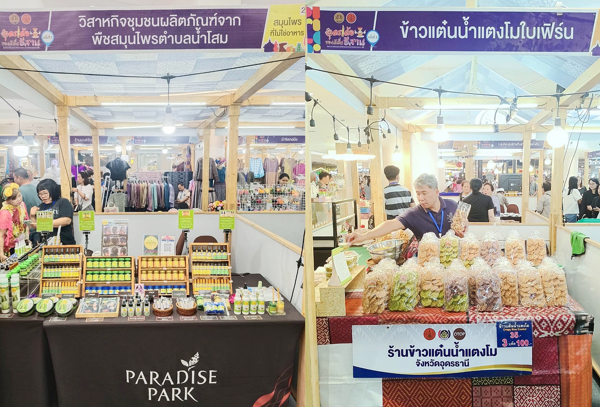 ภายในงานครั้งนี้ พบกับการจำหน่ายสินค้าอัตลักษณ์และสินค้าเด่นของผู้ประกอบการจังหวัดอุดรธานี จำนวน 40 คูหา อาทิ ผ้าไหม ผ้าหมี่ขิด เสื้อผ้าเครื่องแต่งกาย สมุนไพร เครื่องหนัง เครื่องประดับ และอาหารและเครื่องดื่ม เป็นต้น