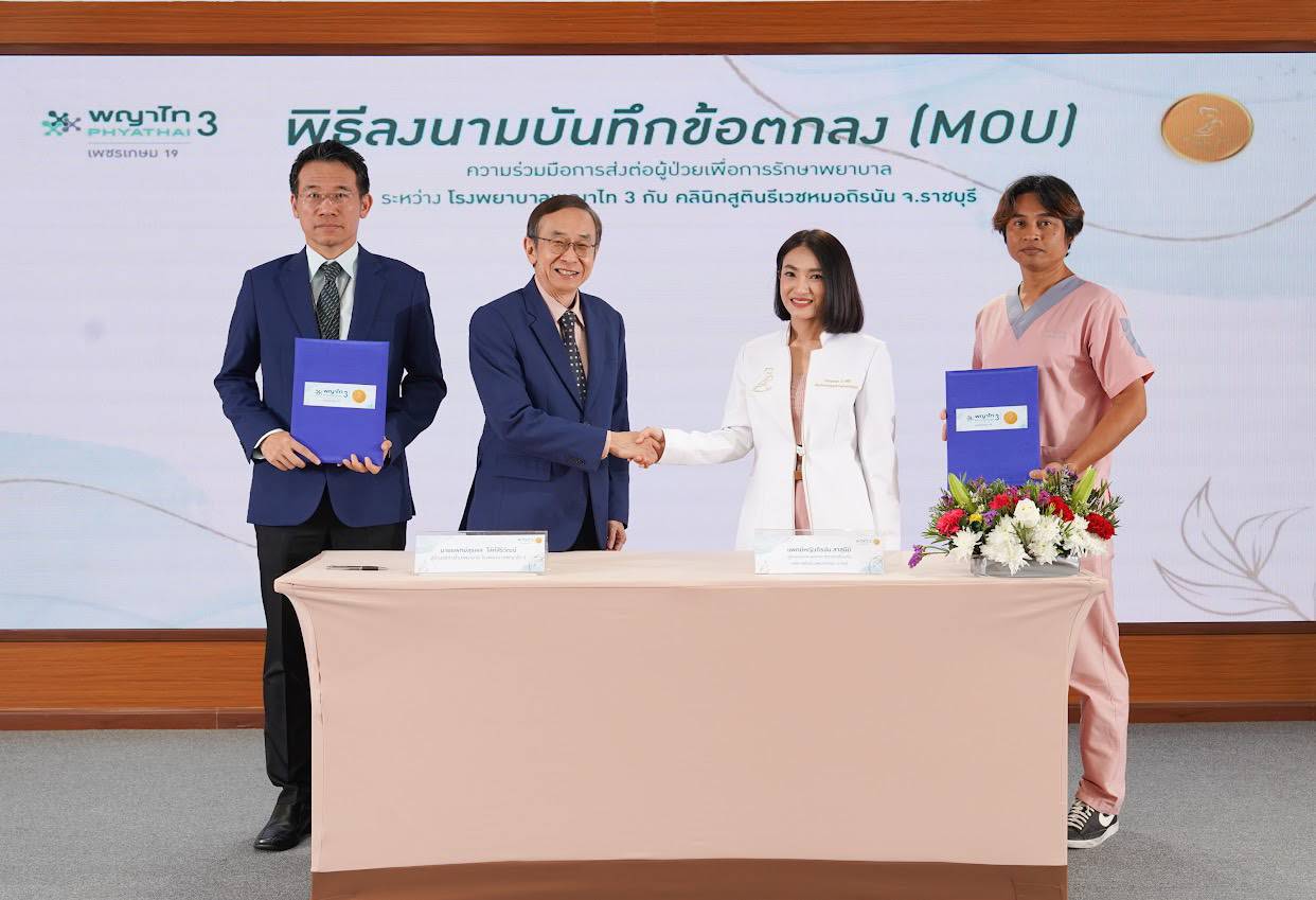 โดย นายแพทย์สุรพล โล่ห์สิริวัฒน์ ผู้อำนวยการโรงพยาบาลพญาไท 3 พร้อมด้วย แพทย์หญิงเยาวภา จงเป็นสุขเลิศ หัวหน้าแพทย์ศูนย์รักษาผู้มีบุตรยาก และ แพทย์หญิงเนตร บุญคุ้ม สูตินรีแพทย์เฉพาะทางมะเร็งทางนรีเวช ประจำศูนย์สุขภาพหญิง โรงพยาบาลพญาไท 3 ร่วมลงนามบันทึกข้อตกลงความร่วมมือ (MOU) กับ แพทย์หญิงถิรนัน สาสุนีย์ แพทย์เฉพาะทางสูตินรีเวชวิทยาและเวชศาสตร์ป้องกัน ผู้บริหารคลินิกสูตินรีเวชหมอถิรนัน จังหวัดราชบุรี เมื่อวันที่ 18 มีนาคม 2569