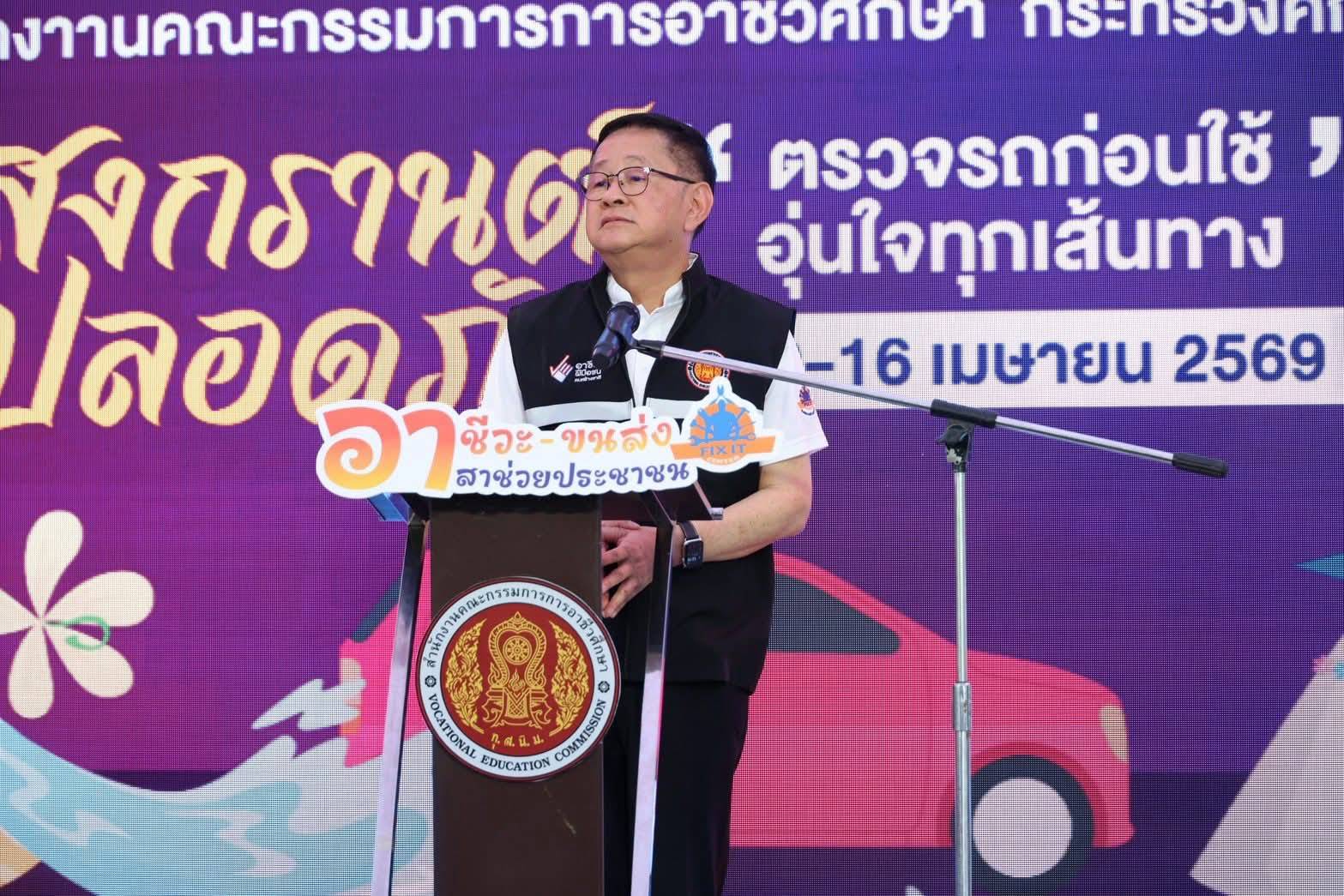 กระทรวงศึกษาธิการผนึกกำลังกระทรวงคมนาคม โดยสำนักงานคณะกรรมการการอาชีวศึกษา ร่วมกับกรมการขนส่งทางบก จัดตั้งจุดบริการอำนวยความสะดวกเพื่อยกระดับความปลอดภัยในการเดินทางของประชาชนช่วงเทศกาลสงกรานต์ ระหว่างวันที่ 10 – 16 เมษายน 2569