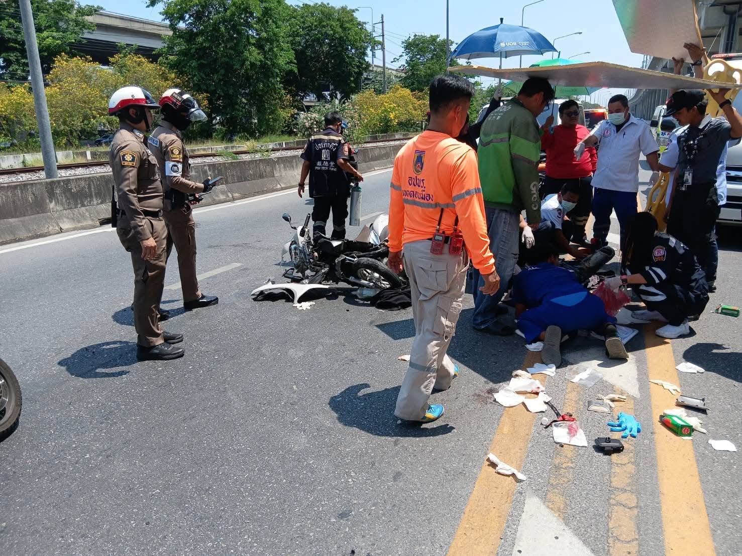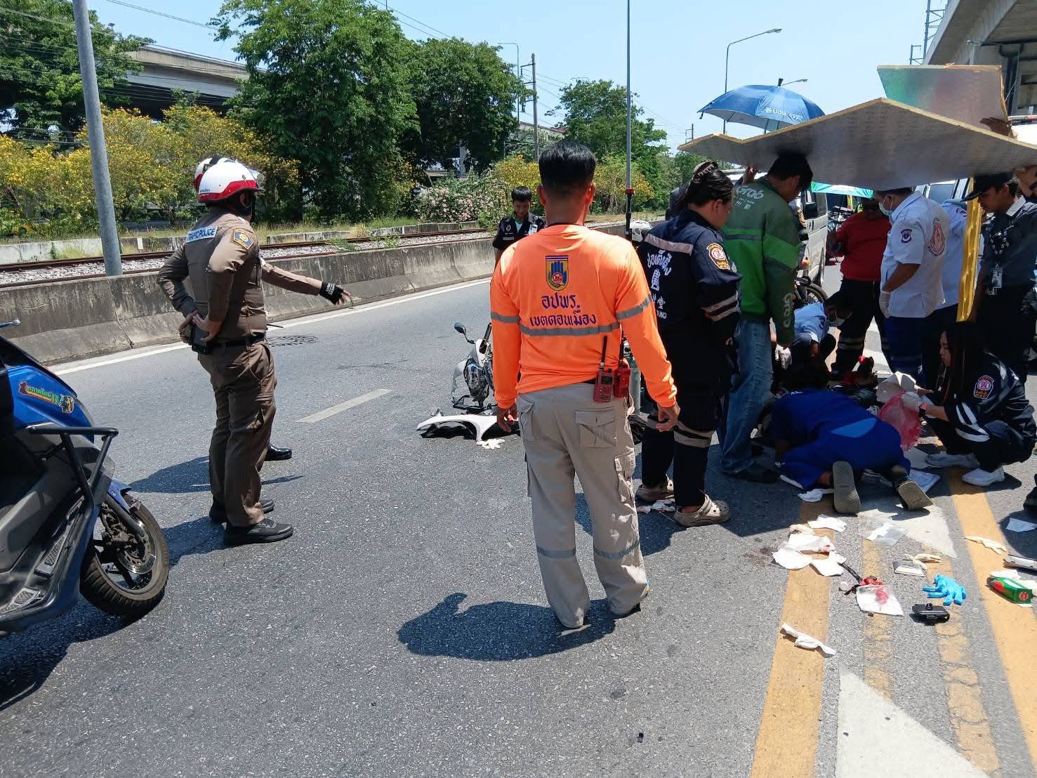 วันที่ 13 เมษายน 2569 เวลาประมาณ 13.35 น. พ.ต.ท.เมธัส อยู่คุ้ม รอง ผกก.จร.สน.ดอนเมือง ได้รับแจ้งเกิดอุบัติเหตุรถจักรยานยนต์เฉี่ยวชนรถยนต์ มีผู้บาดเจ็บ 2 ราย บริเวณอาคารศูนย์ลูกเรือ ถนนกำแพงเพชร 6 แขวงและเขตดอนเมือง กรุงเทพมหานคร หลังรับแจ้ง จึงได้เร่งเข้าระงับเหตุและให้ความช่วยเหลือผู้บาดเจ็บ และอำนวยความสะดวกการจราจร