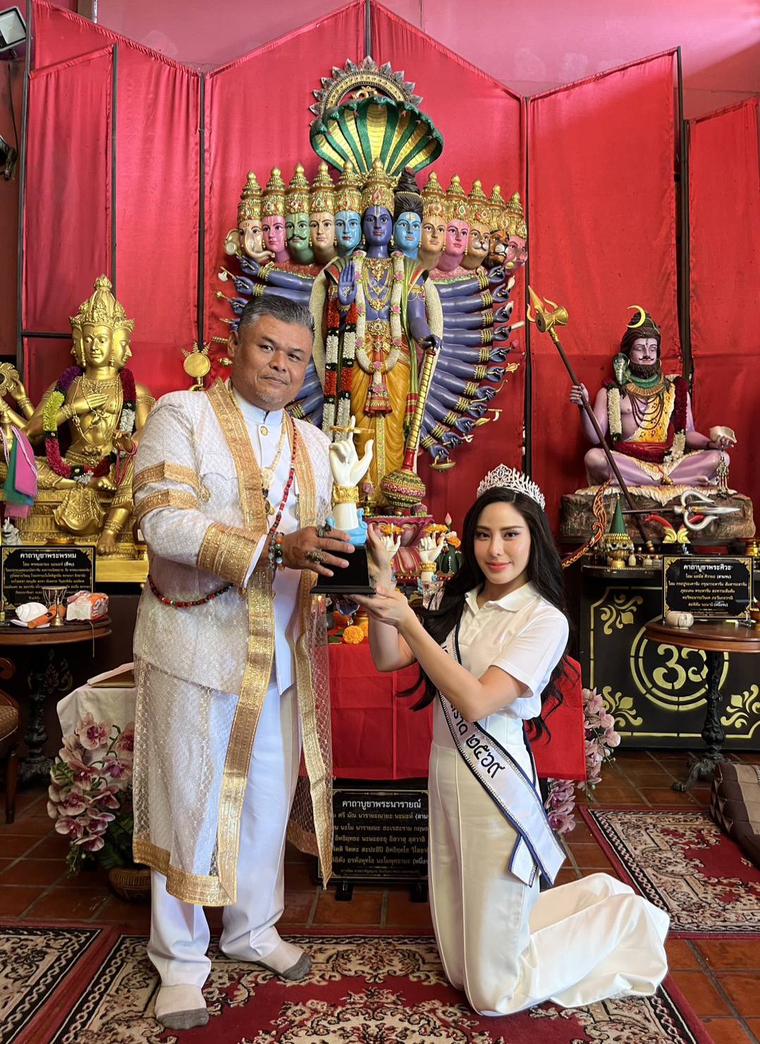 มิสแกรนด์สุโขทัย 2021-2022 /Miss Universe ระยอง 2023 และ นางสาวไทย ตราด 2569 ปีล่าสุด เป็นตัวแทน ท่าน ดร.ศรีสุริยะ สะริมินยุพเรศ นายกสมาคมพัฒนาผู้ประกอบการวัยรุ่นไทย และ วัยทำงาน เป็นประธานในเปิดพิธีจุดเทียน-ธูป บวงสรวงขออนุญาติต่อสิ่งศักดิ์สิทธิ์ เทพเทวา ภายในพิพิธภัณฑ์เทพศรียันตราบางแค จัดสร้างสิ่งมงคลถ้วยรางวัล หัตถานารายณ์ ครั้งที่ 2 ณ มูลนิธิเทพศรียันตรา
