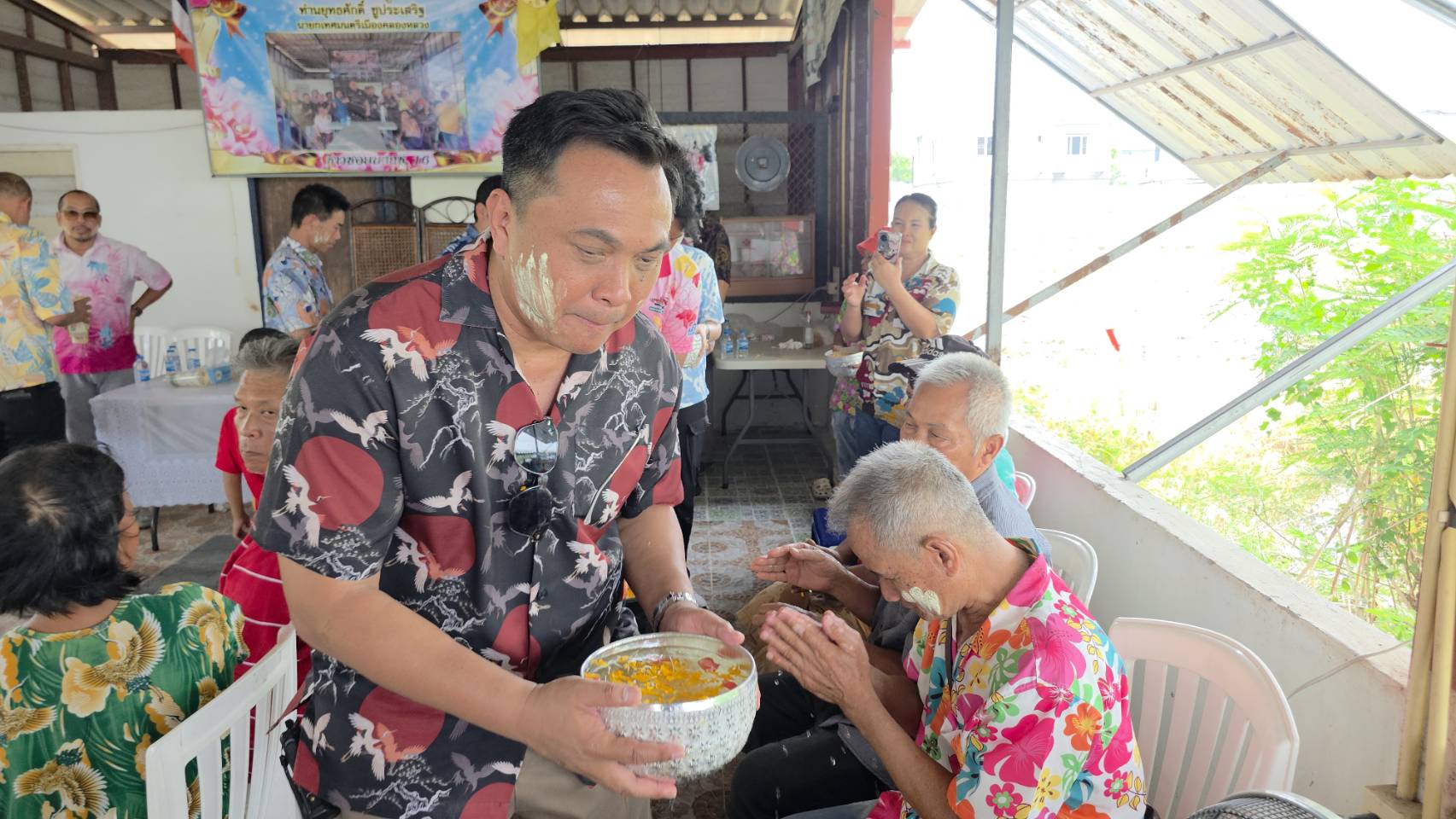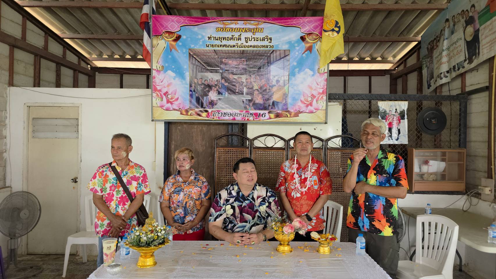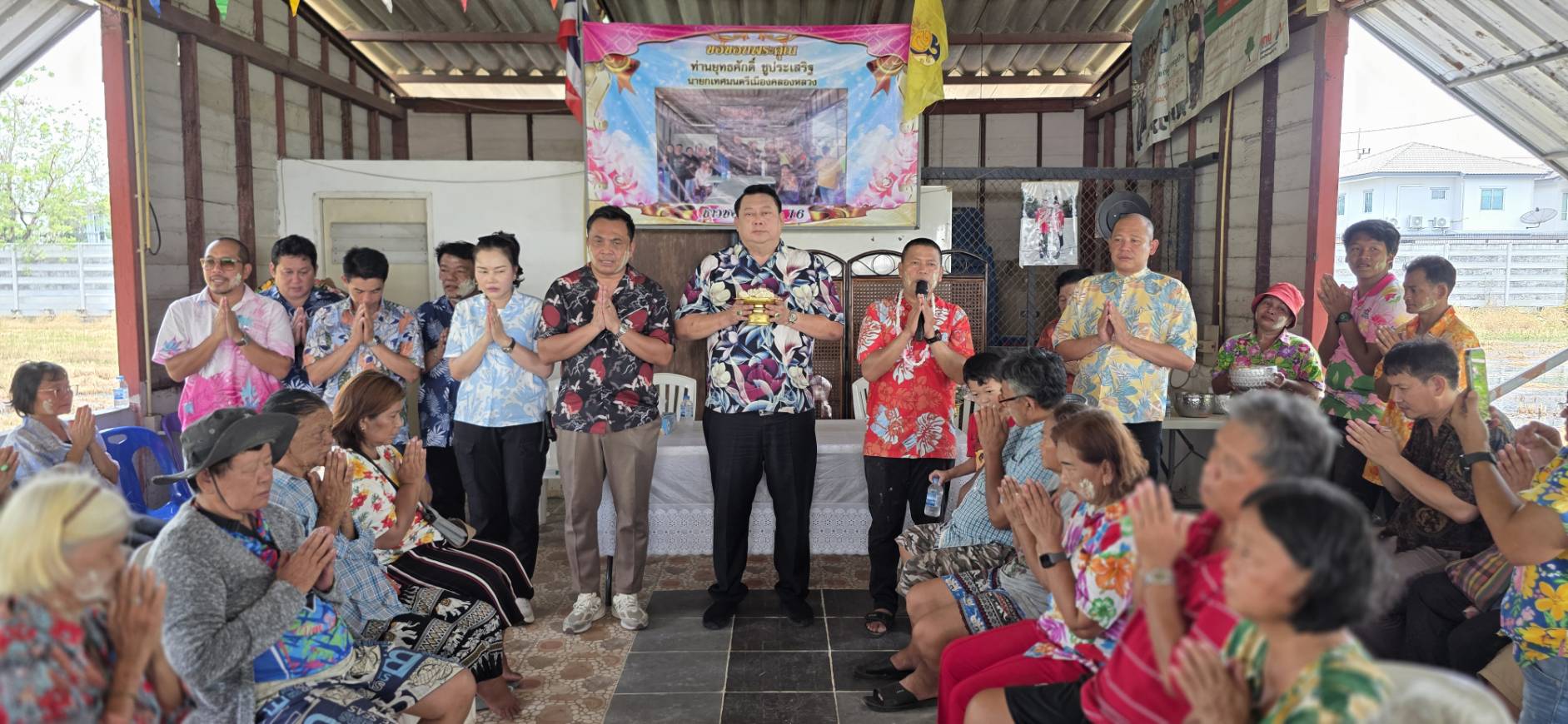 เมื่อเวลา 13.00 น. วันที่ 19 เมษายน 2569 ณ ศาลาประชาคม ซอยบงกช 16 ต.คลองสอง อ.คลองหลวง จ.ปทุมธานี นายยุทธศักดิ์ ชูประเสริฐ นายกเทศมนตรีเมืองคลองหลวง พร้อมด้วย นางสาวพรปริญญา ศรีจันทร์ (สจ.ลูกโป่ง) สมาชิกสภา อบจ.ปทุมธานี และคณะผู้บริหาร ลงพื้นที่จัดกิจกรรมรดน้ำดำหัวขอพรผู้สูงอายุเนื่องในเทศกาลสงกรานต์ พร้อมมอบถุงยังชีพเพื่อบรรเทาความเดือดร้อน ท่ามกลางบรรยากาศสุดชื่นมื่นหลังทราบข่าวดีเรื่องการชนะคดีที่ดิน