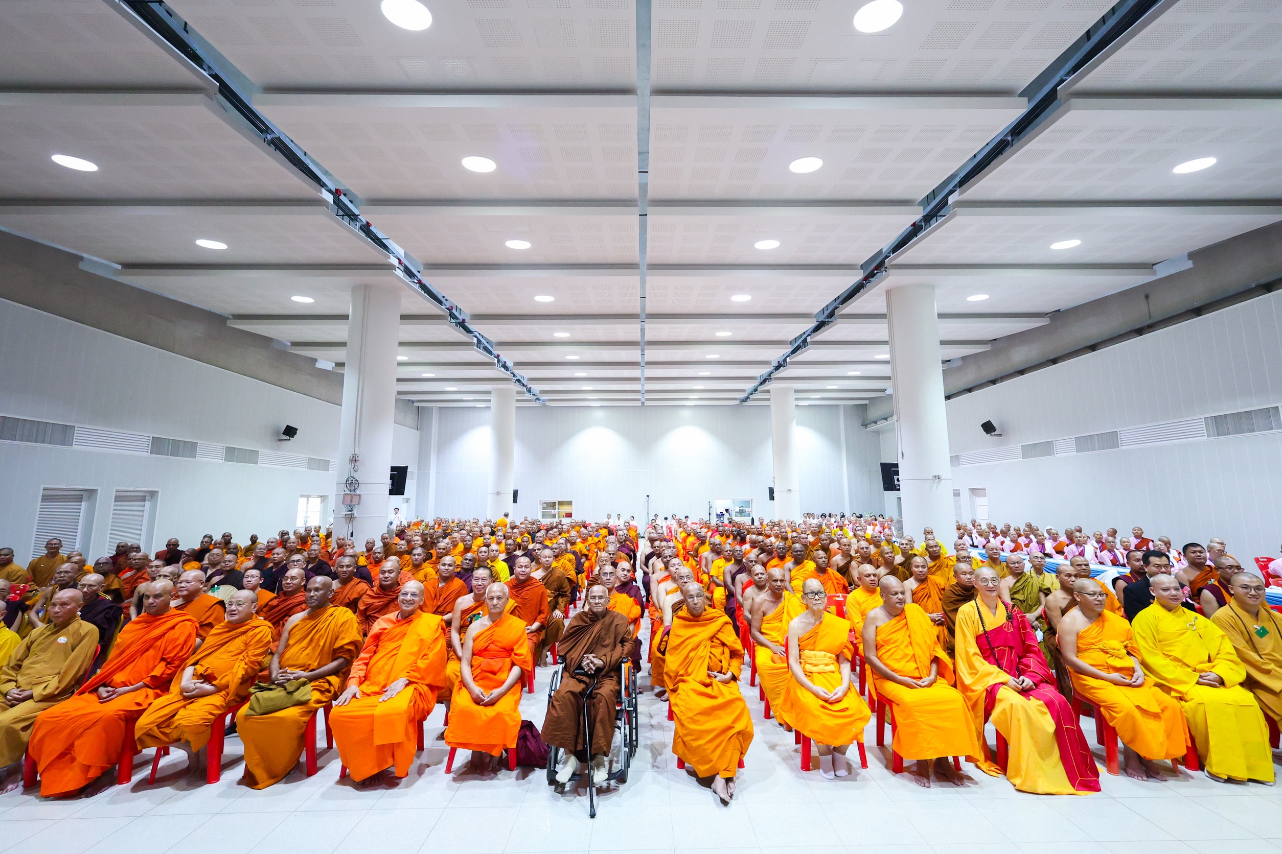 ในโอกาสอันเป็นมงคลนี้ พระราชวิเทศวชิรบัณฑิต ประธานมูลนิธิธรรมกายและผู้อำนวยการสำนักต่างประเทศ ได้มีสารยินดีต้อนรับและอนุโมทนาการสัมมนากับคณะสงฆ์นานาชาติ อ่านโดย พระพรชัย พลวธมฺโม ประธานองค์กรพุทธโลก (WAB) และ ดร.วิระศักดิ์ ฮาดดา นายก อบต.คลองสาม กล่าวต้อนรับในฐานะผู้แทนชุมชนเจ้าของพื้นที่ จากนั้น พระครูสมุห์สนิทวงศ์ วุฑฺฒิวํโส เป็นผู้แทนวัดพระธรรมกาย รับมอบถวาย “พระพุทธรูปแก้วใส” ซึ่งเป็นของขวัญพิเศษจาก Most Ven. Dahui ประธานสมาคมพุทธศาสนาแห่งไถจง เพื่อถวายแด่ หลวงพ่อธัมมชโย ด้วย รวมถึง ดร. เอ็มเค โอตานี่ ที่ปรึกษากระทรวงวัฒนธรรมอินเดีย ถวายภาพวาดหลวงพ่อธัมมชโย