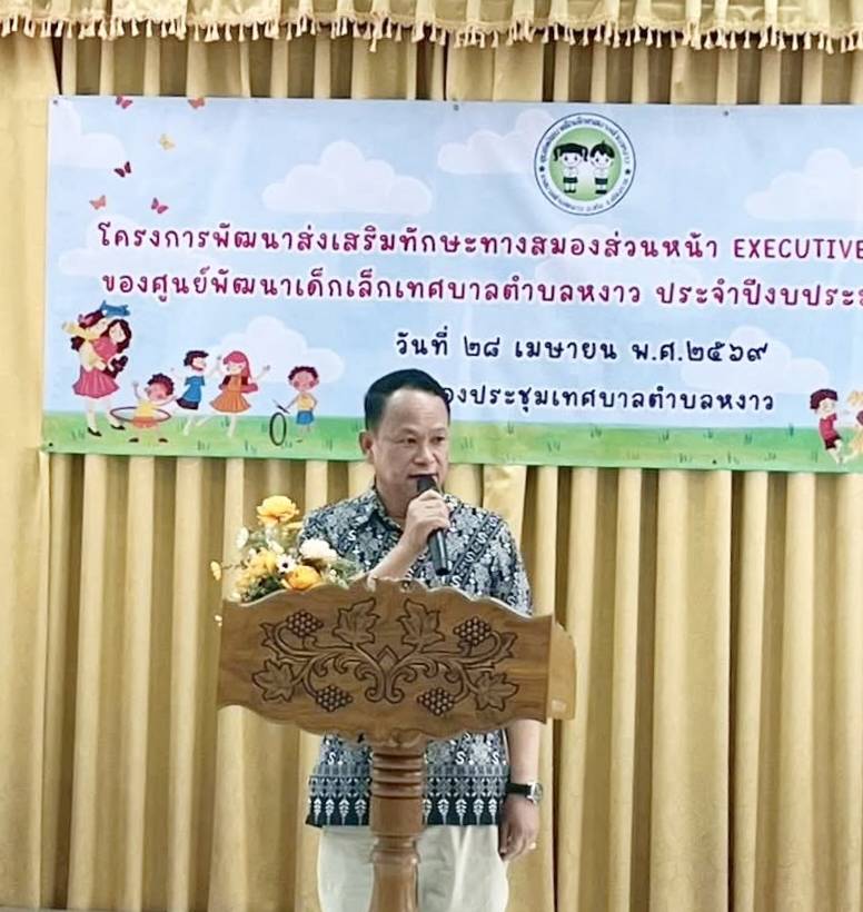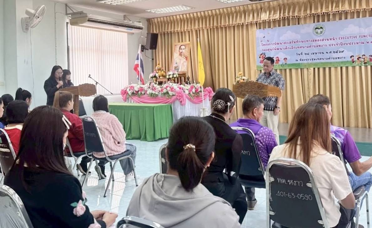 วันที่ 28 เมษายน 2569 ที่ผ่านมา ว่าที่ พ.ต.ต.วรเมธ ธรรมจันตา นายกเทศมนตรีตำบลหงาว เป็นประธานเปิดโครงการพัฒนาส่งเสริมทักษะทางสมองส่วนหน้า Executive Function (EF) ประจำปีงบประมาณ พ.ศ. 2569 ของศูนย์พัฒนาเด็กเล็กเทศบาลตำบลหงาว อำเภอเทิง จังหวัดเชียงราย โดยมีผู้ปกครองนักเรียน ครู และบุคลากรทางการศึกษา เข้ารับการอบรมในครั้งนี้ เพื่อสร้างความรู้ความเข้าใจแก่ผู้ปกครองและผู้มีส่วนเกี่ยวข้องกับการพัฒนาส่งเสริมทักษะสมองส่วนหน้า (EF)