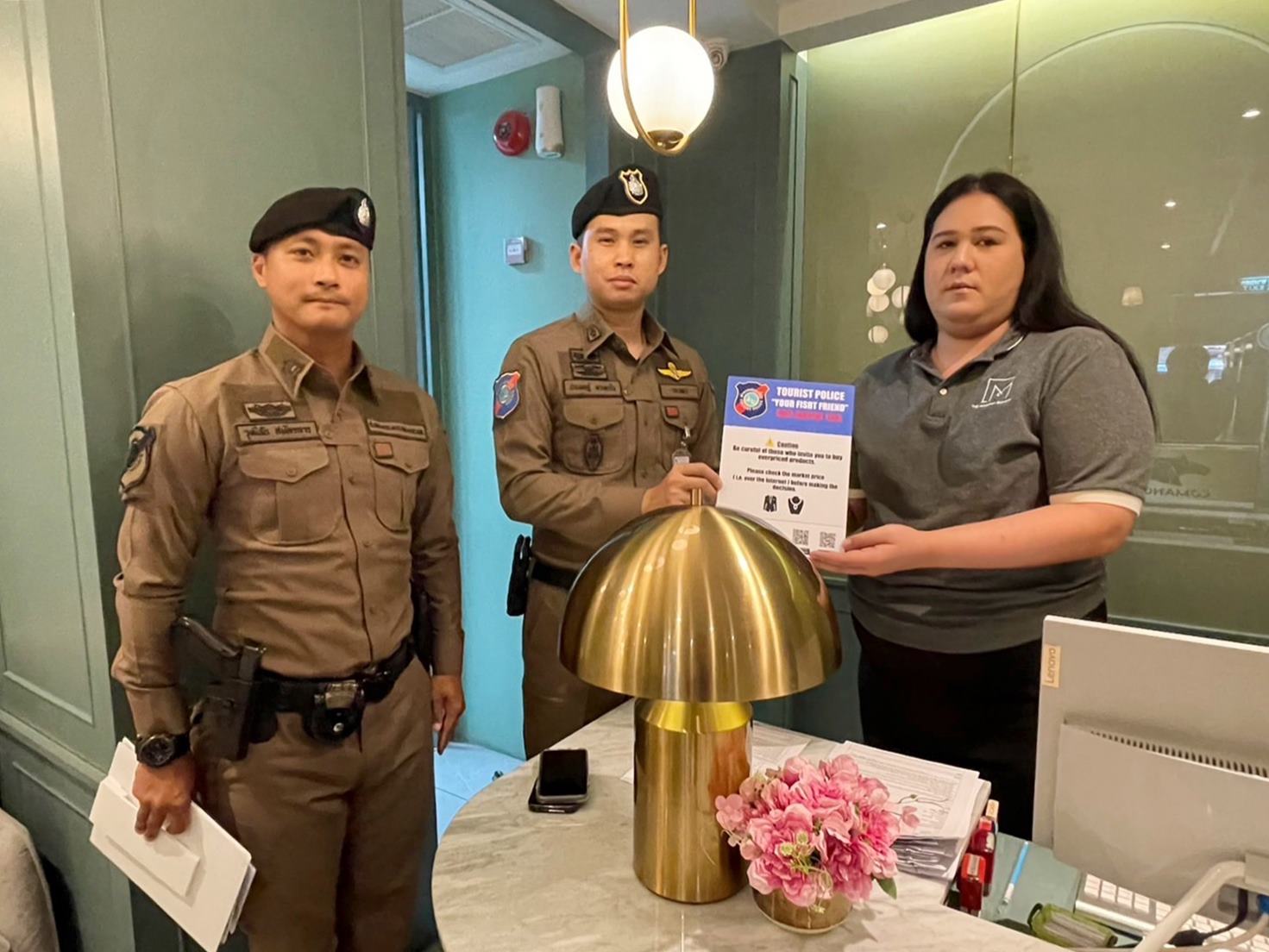 พ.ต.อ.ปิยรัช สุภารัตน์ ผู้กำกับการตำรวจท่องเที่ยวกรุงเทพ กล่าวว่าการปฏิบัติการดังกล่าวกล่าวเป็นการป้องกันเหตุเชิงรุก ในเชิงการประชาสัมพันธ์สร้างภาพการรับรู้ให้นักท่องเที่ยวควบคู่กันไป ตามนโยบายของ พล.ต.ท.สุคุณ พรหมายน ผบช.ทท. พล.ต.ต.ศุภเศรษฐ์ โชคชัย รอง ผบช.ทท. พล.ต.ต.อภิชาติ สุริบุญญา รอง ผบช.ทท. พล.ต.ต.พงษ์สยาม มีขันทอง รอง ผบช.ทท. พล.ต.ต. สมเกียรติ วัฒนพรมงคล รอง ผบช.สตส. ปฏิบัติราชการ บช.ทท. พล.ต.ต.มล.สันธิกร วรวรรณ ผบก.ทท.1 จึงได้เกิดโครงการทำป้ายประชาสัมพันธ์แจ้งเตือนให้นักท่องเที่ยวรับรู้ โดยร่วมมือกับโรงแรมที่เกี่ยวข้องซึ่งเป็นจุดที่นักท่องเที่ยวต่างชาติมักจะมาพัก ติดตั้งป้ายเตือนดังกล่าวภายในบริเวณโรงแรม เช่น ล็อบบี้โรงแรม หรือภายในห้องพักโรงแรม ซึ่งในวันนี้ได้เริ่มการออกพื้นที่ประชาสัมพันธ์ป้ายเตือน บริเวณโรงแรมในพื้นที่ถนนข้าวสาร