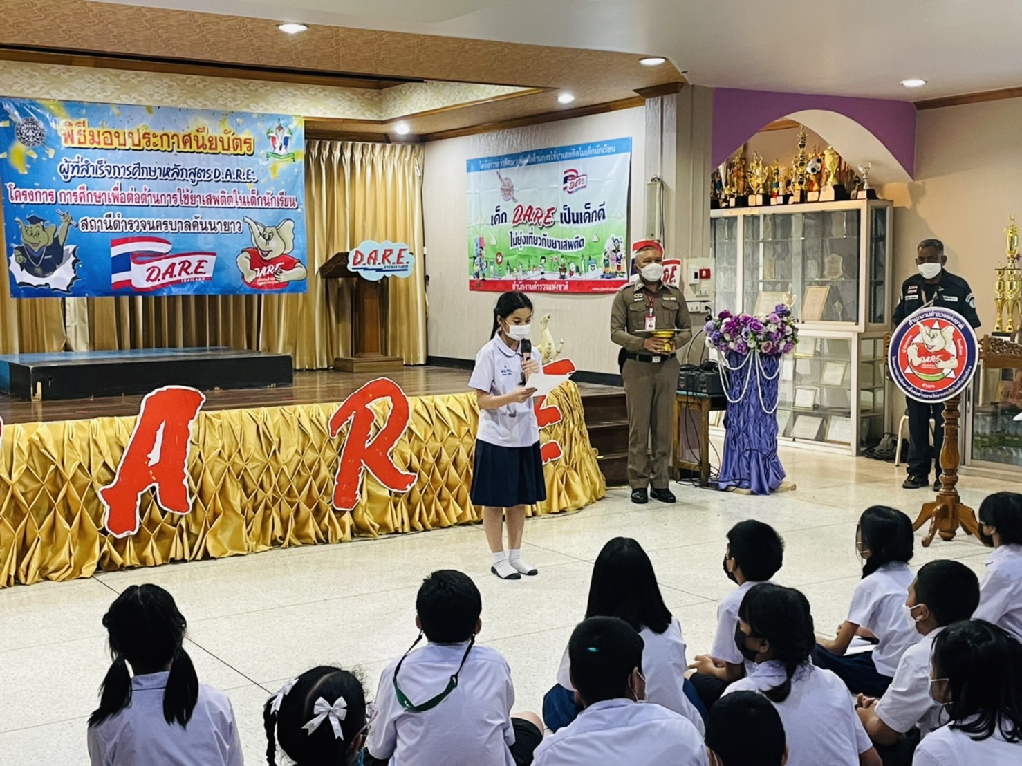 โดยกิจกรรมพิธีปิดโครงการ D.A.R.E.ประเทศไทย ทางพ.ต.อ.นเรนทร์ เครื่องสนุก ผกก.สน.คันนายาว ได้มอบโอวาท พร้อมร่วมมอบรางวัลแก่นักเรียนที่เขียนเรียงความแดร์ 5 รางวัล และร่วมกิจกรรมการอ่านคำปฏิญาณของนักเรียนแดร์ ก่อนทำพิธีรมอบประกาศนียบัตรให้แก่นักเรียนที่ผ่านการอบรมโครงการแดร์