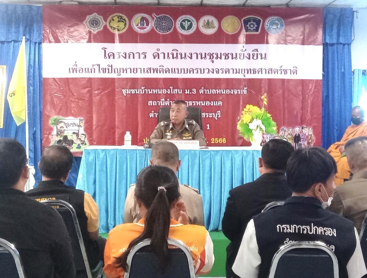 พ.ต.อ.สิงห์ สิงห์เดช รอง ผบก ภ.จว.สระบุรี กล่าวว่า หลังจากได้รับการร้องเรียนจากประชาชนว่า พื้นที่ ม.3 ต.หนองจรเข้ มียาเสพติดระบาด ในปี 2566 นี้ทางชุมชนยั่งยืนฯ สภ.หนองแค จึงได้นำพื้นที่ดังกล่าวมาเป็นพื้นที่เป้าหมายในการช่วยเหลือให้โอกาสผู้ติดยาเสพติด มีการเข้าพื้นที่ทำการ X-RAY อย่างจริงจัง และทางเจ้าหน้าที่ตำรวจ สภ.หนองแค ดำเนินโครงการอย่างเข้มงวด เป็นที่ประจักษ์ดังที่ผ่านมา ก็ต้องขอความร่วมมือจากทั้งนายอำเภอหนองแค หน่วยงานทุกหน่วยงาน ผู้ปกครอง ให้ช่วยกันผลักดันโครงการชุมชนยั่งยืนฯ และเป็นหูเป็นตารวมถึงให้กำลังใจผู้เข้ารับการบำบัด ได้กลับตัวเป็นคนดีสู่สังคมต่อไป