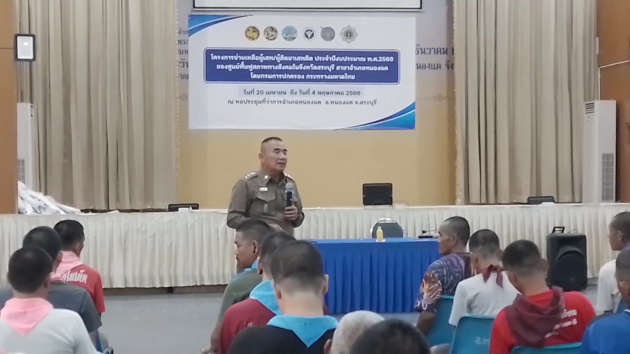 วันนี้ 28 เม.ย.66 ณ หอประชุมที่ว่าการ อ.หนองแค จ.สระบุรี พ.ต.อ.สถิตย์ สังข์ประไพ ผกก.สภ.หนองแค เปิดกิจกรรม พร้อมให้โอวาทและให้เกียรติเป็นวิทยากรให้ความรู้กับผู้เข้าร่วมโครงการช่วยเหลือผู้เสพ / ผู้ติดยาเสพติด ในโครงการชุมชนยั่งยืนแก้ไขปัญหายาเสพติดแบบครบวงจรตามยุทธศาสตร์ชาติ ประจำปีงบประมาณ 2566 โดยมีเจ้าหน้าที่ ชุดปฏิบัติการชุมชนยั่งยืนฯ สภ.หนองแค ร่วมเป็นวิทยากรให้ความรู้ในด้านต่างๆ ก่อนที่จะให้ผู้เข้าร่วมโครงการได้ทำแบบสอบถามเพื่อนำเอาข้อมูลปรับประยุกต์การปฏิบัติการต่อไป