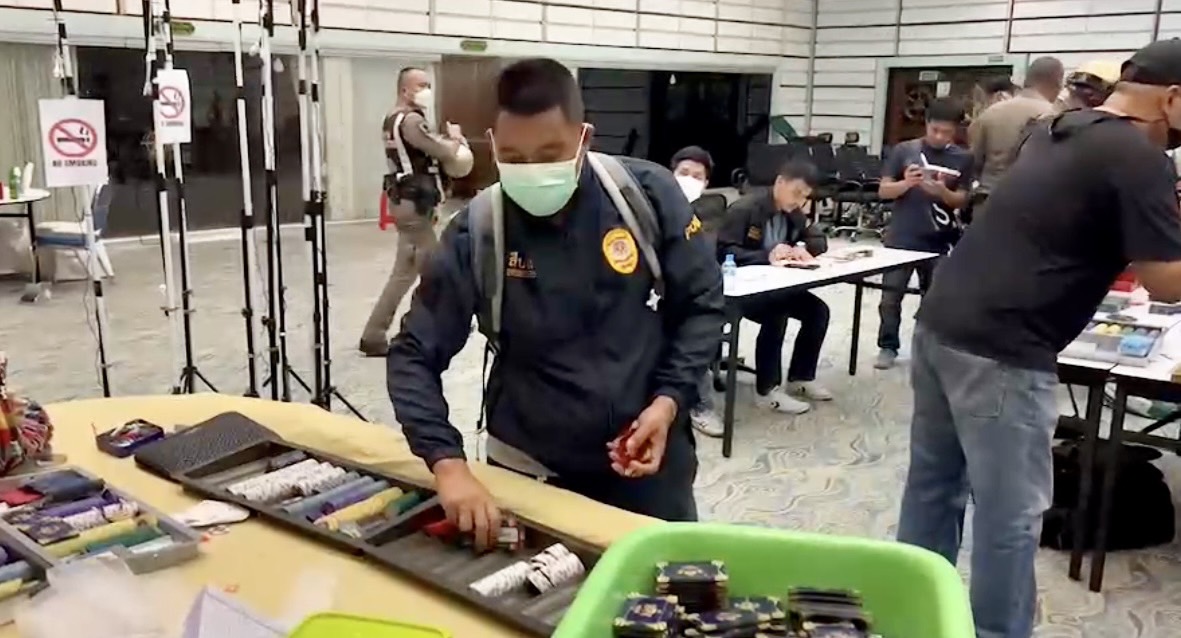 เมื่อเวลา 00.16 น.วันที่ 1 พฤษภาคม 2566 พล.ต.ต.กัมพล ลีลาประภาภรณ์ ผบก.ภ.จว.ชลบุรี พ.ต.อ.ฐนพงศ์ โพธิ์ทิ ผกก.สภ.เมืองพัทยา พ.ต.ท.สุรเชษฐ์ เอนกศรี รองผกก.ป. พ.ต.ท.ฐานานนท์ อธิพันสีห์ รอง ผกก.สส. พ.ต.ท.ชัยณรงค์ จิตต์สุนทร สว.สส.พ.ต.ท.อรุษ สภานนท์ สว.จร.สภ.พัทยา นำกำลังเจ้าหน้าที่ตำรวจสภ.เมืองพัทยา เจ้าหน้าที่ตำรวจท่องเที่ยว เจ้าหน้าที่ตำรวจตรวจคนเข้าเมือง เจ้าหน้าที่ตำรวจสืบสวนจังหวัดชลบุรี บุกเข้าจับกุมบ่อนการพนัน ที่โรงแรมเอเซีย เมืองพัทยา ภายในซอยพระตำหนัก 4 ต.หนองปรือ อ.บางละมุง จ.ชลบุรี พร้อมของกลางจำนวนมาก