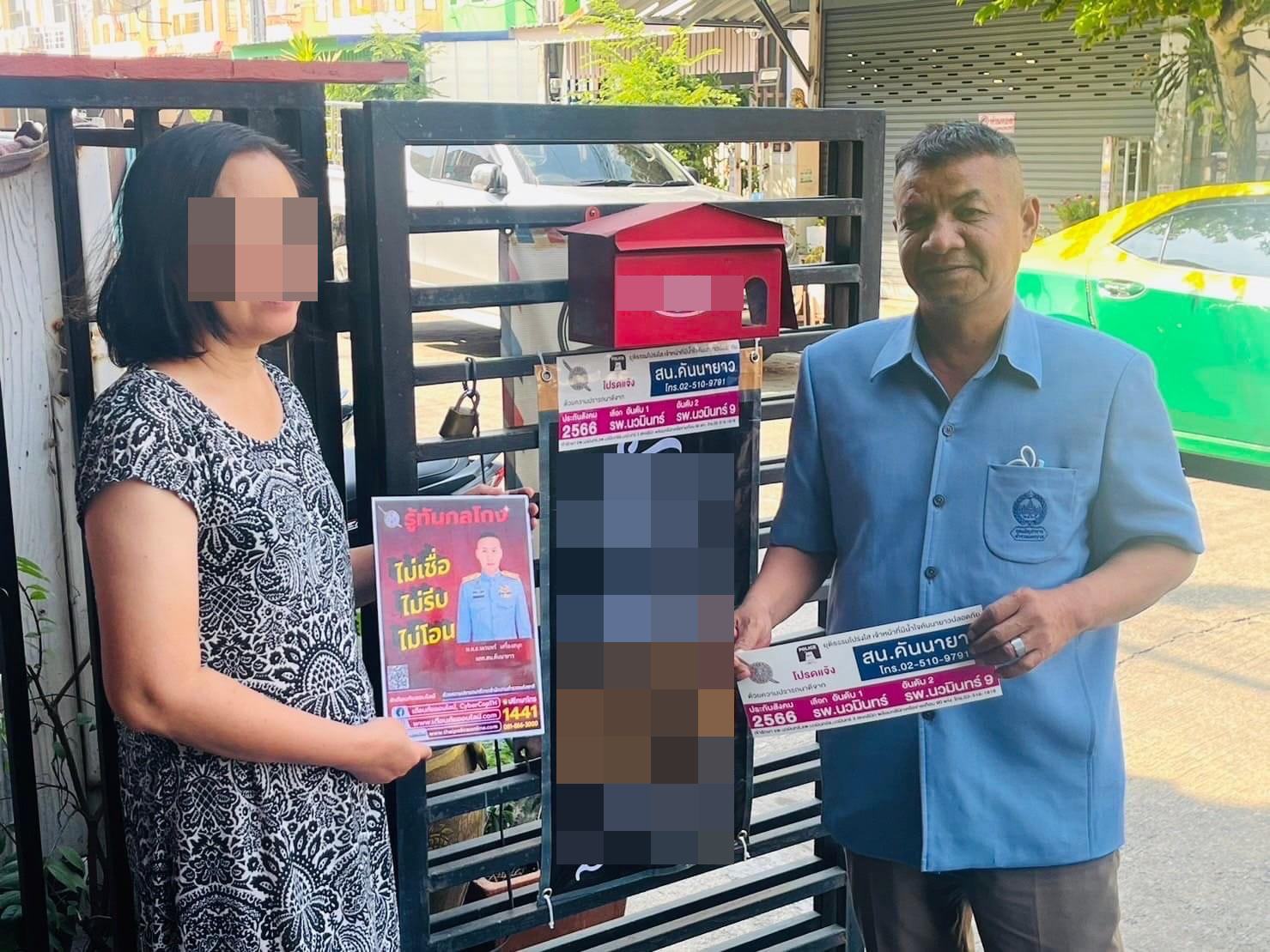 ว่าที่ พ.ต.ต.กัญจ์ แสงวงศ์ สวป.( ชส.) กล่าวว่า ตามคำสั่งการของ พ.ต.อ.นเรนทร์ เครื่องสนุก ผกก.สน.คันนายาว ที่เร่งให้ปราบปรามอาชญากรรมในทุกมิติเพื่อให้ประชาชนอยู่อย่างผาสุก ได้สั่งการให้เจ้าหน้าที่ฝ่ายปราบปรามชุดชุมชนสัมพันธ์ลงพื้นที่หมู่บ้านหรือชุมชนที่มีปัญหา ซึ่งวันนี้ได้ทำการลงพื้นที่ ชุมชนแดนทองวิลเลจ เนื่องจากมีชาวบ้านร้องทุกข์มาที่ สน.คันนายาว ดังข้างต้น ตนเองจึงนำทีมเจ้าหน้าที่ ตชส.สน.คันนายาว เข้าตรวจสอบพร้อมชี้แจงแนวทางแก้ไข ก่อนทำการประชาสัมพันธ์แจกสติ้กเกอร์แจ้งแหตุด่วน พร้อมฝากบอกชาวชุมชนว่าพบเหตุด่วนเหตุร้ายสามารถโทรศัพท์แจ้งมาได้ที่เบอร์ของ สน.คันนายาว เบอร์ 081-9304733 และ 02-5109791 ตลอด 24 ชม.